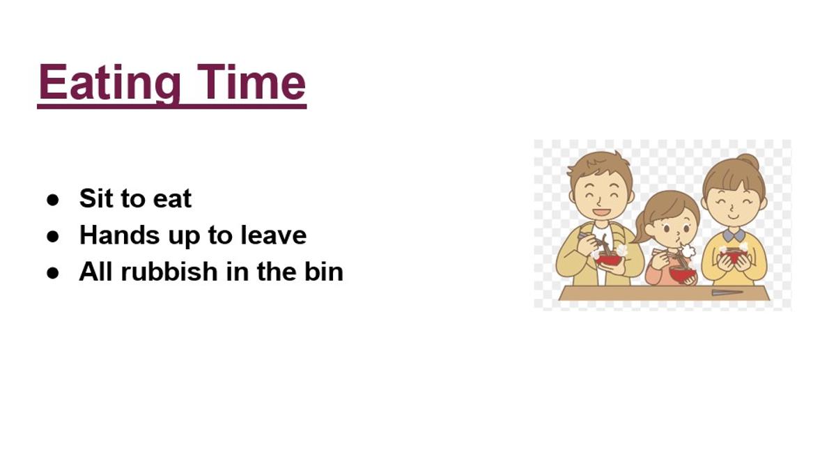 This week, our PBIS (Positive Behaviour Interventions & Supports) focus is on eating time. After returning to school following our school holidays, we are focusing on ensuring all students are eating in their allocated spaces, placing rubbish into the bins and returning their lunchboxes to the correct tubs.