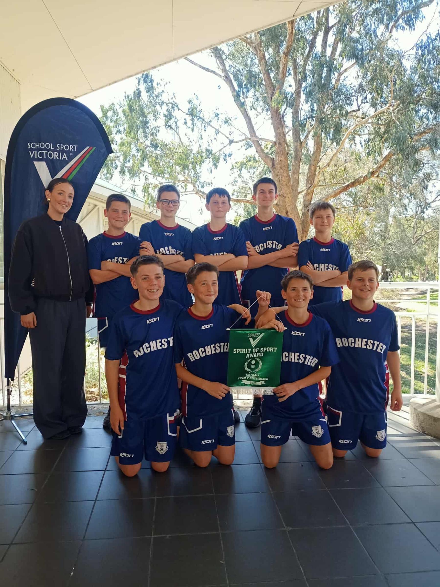 Our Year 7 boys netball team competed at the State Netball Championships on Monday 15th September. They placed equal third in the state and were also awarded the 'SSV Spirit of Sport Award'.
