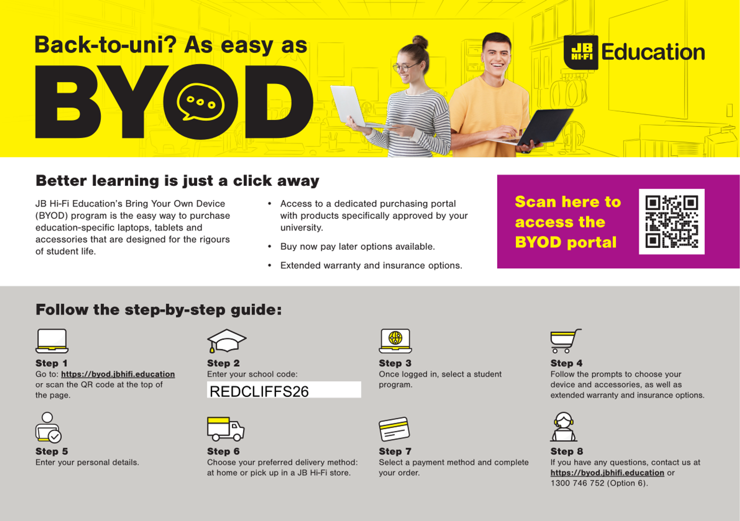 Pleasesee information below from JB Hi-Fi Education's Bring Your Own Device (BYOD) program if you would like to purchase an education-specific laptop, tablet and accessories for 2026.