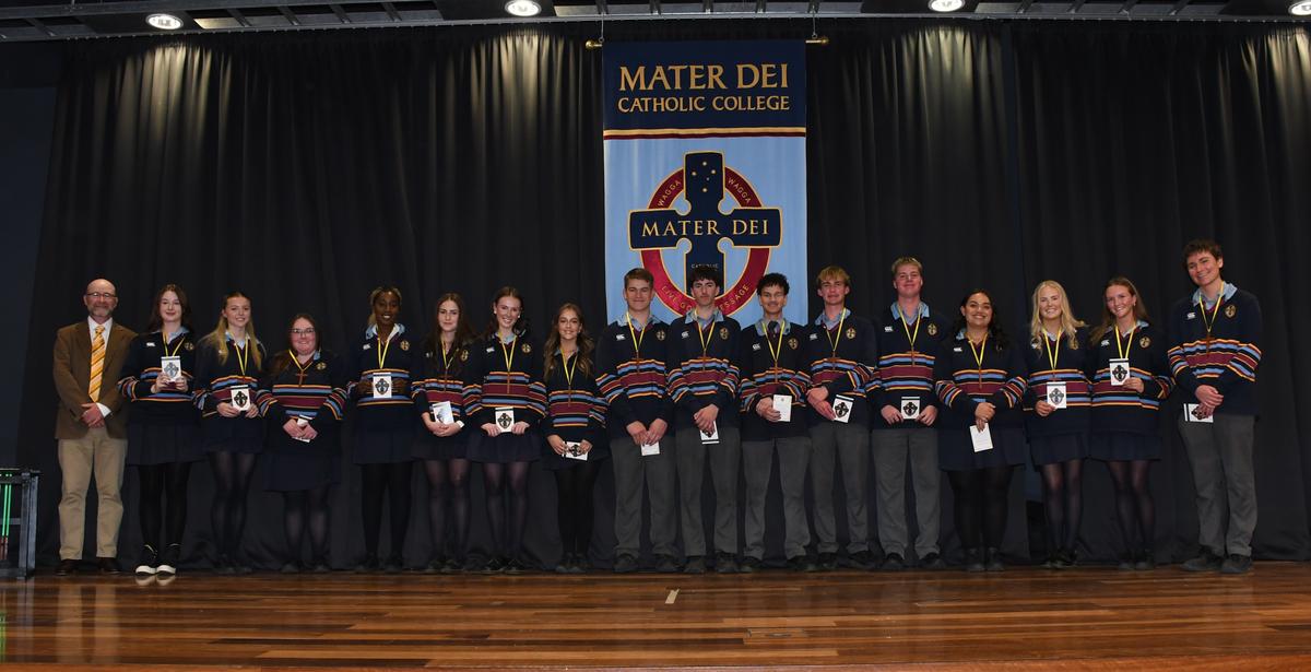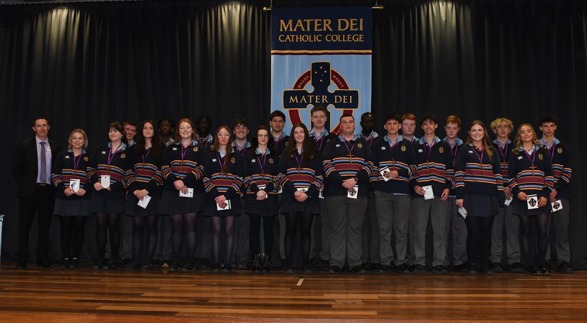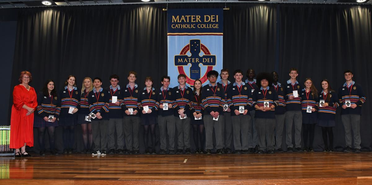 One highlight of the gathering was the manner in which the students received their “Mater Dei Cross” and their House Prayer Card. The cross serves to remind our Year 12 students what it means to be a member of the wonderful community at Mater Dei Catholic College; that Jesus is a constant source of forgiveness, hope and compassion; and, to be a disciple of Jesus and to live their lives marked by the words and deeds espoused in the Gospels. Also, the Mater Dei Cross is a symbol that epitomises what the prophet Micah encouraged us all: ‐ “To act justly, to love tenderly and to walk humbly with our God.” The House Prayer Card is a reminder of their enduring relationship with the College as an expression of faith.