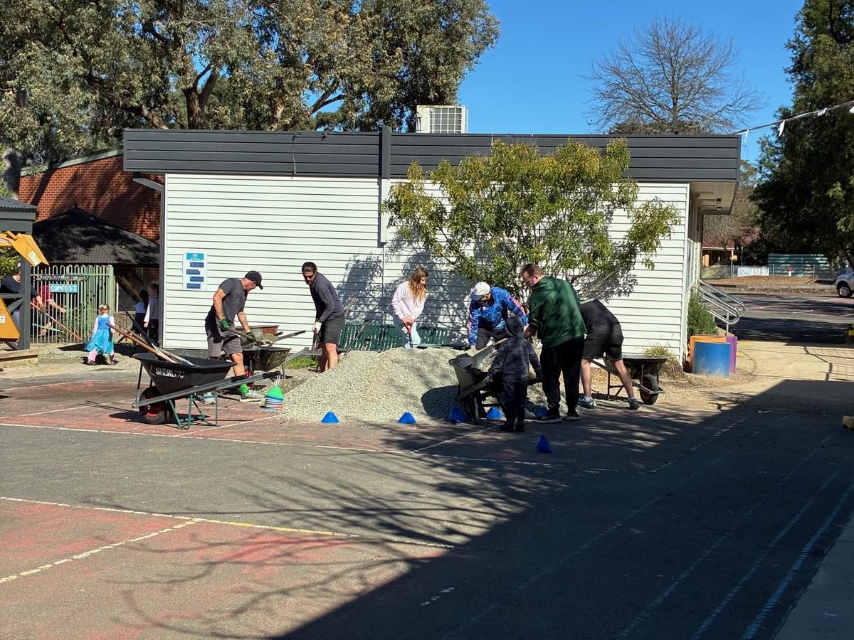 A huge thank you to everyone who came along to our Working Bee last weekend—we had a fantastic turnout! Together we completed so many jobs: moving piles of crushed rock and dirt into the veggie garden, staining the temporary flooring in the admin building, collecting rocks from around the dry creek bed, scrubbing the art room tables, and of course, plenty of weeding. As always, the BBQ and ice creams were a big hit to finish off the morning. We were so grateful to our wonderful community for showing up in such great numbers and helping make our school look amazing.