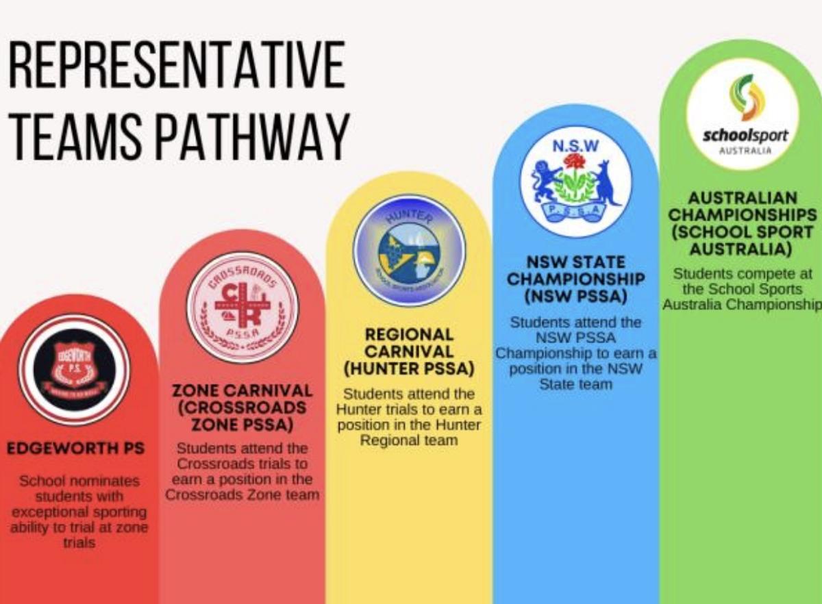 Students from Edgeworth Public School with exceptional sporting ability can nominate to attend Crossroads Zone PSSA trials, typically for Years 5 and 6 (capped at 6 students per sport). Successful students progress to Hunter Region trials, then to the NSW PSSA Championships, with the opportunity to be selected for the NSW PSSA team.
