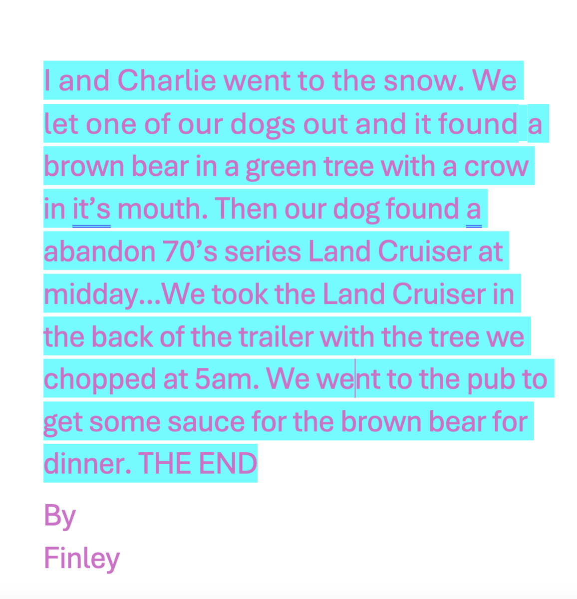 The children were challenged to write short stories using as many words with long vowel sounds as they could.