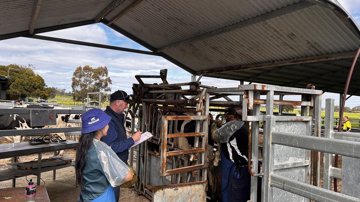 Mr Falkingham and Mr Jolly were busy preg-testing the cows and heifers at the dairy this week with the students. Using a combination of AI and natural service, the results showed a strong pregnancy rate.