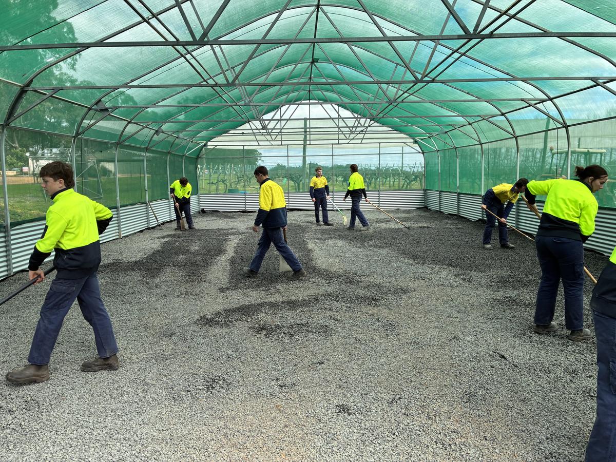 The shade house is progressing really well in Horticulture, with staff and students working together to lay plastic and spread blue metal to create a neat surface. Once complete, the shade house will be used for growing produce and flowers throughout the year. The plants will be protected from strong easterly winds on hot summer days, as well as from pests. Looking ahead, we plan to install a misting system to provide even watering and help regulate the climate inside the shade house.
