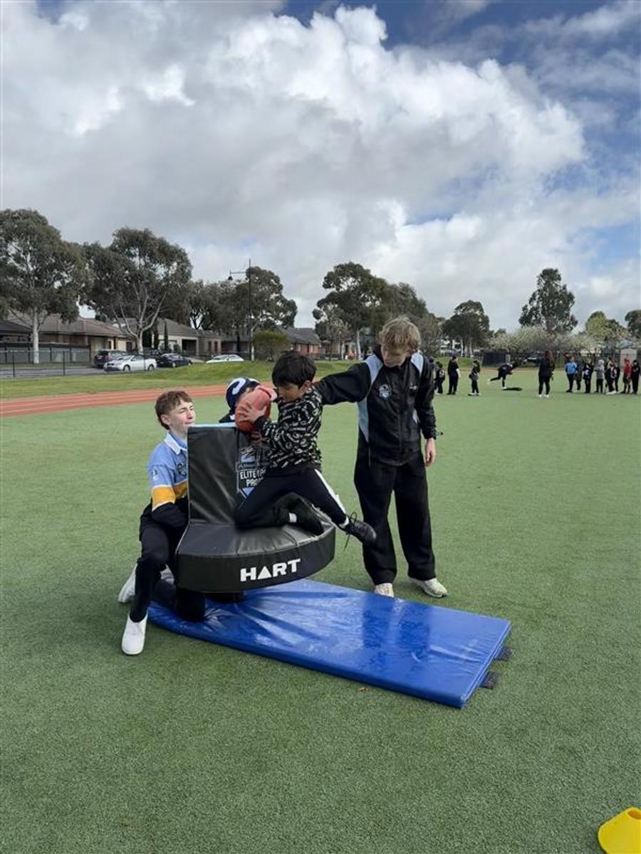 Our P–6 students proudly celebrated Footy Colours Day, dressed in their favourite team colours. In the morning, our preps braved the chilly weather to take part in a range of football activities run by our Year 10 ESP class. As the sun came out later in the day, the rest of our junior students had the chance to practice their skills and enjoy some fun activities. To top it off, everyone was treated to a delicious sausage sizzle lunch, kindly cooked by our PFA volunteers and VM class.