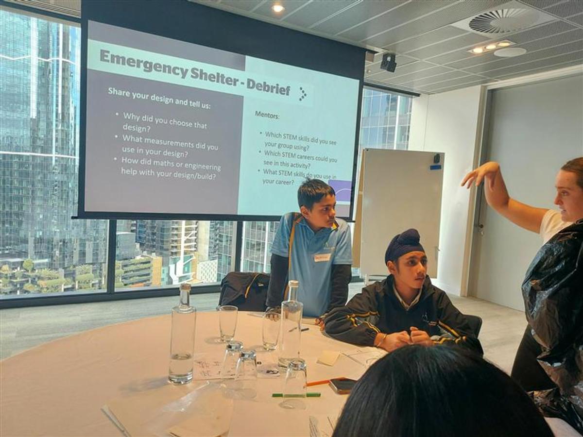 The STEM students had a second visit to Price Waterhouse Coopers building to work with a STEM Teacher. It was a full on day for the 14 students & the students played a lot of theme based games dealing with real life scenarios. Then moved on to a case study which took most of the day. The Case Study was to design a emergency structure and present all the thinking and justify their designs. They were well supported with two people from PWC supporting each of the four groups. At lunch they were given corporate lunch with all the trimmings and a variety to cater for all. Most of the students worked through their lunch time in order to meet the deadline in the afternoon then they each had to present. The last task for the Mount Ridley College students was to say thank you. Two students gave superb thank you speeches and our coordinator was quite touched by their words.
