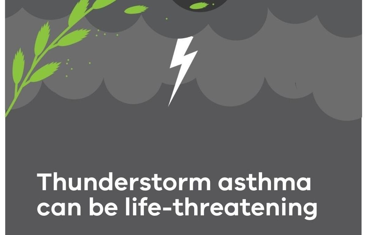 Thunderstorm asthma events are thought to be triggered by an unusual mix of high levels of grass pollen and a certain type of thunderstorm. During these storms tiny pollen grains from grasses can be swept up in the wind and carried long distances. When exposed to this air, the tiny particles of pollen are breathed deep into your lungs, triggering an asthma flare-up or attack. The peak time for thunderstorm asthma is mainly spring but can extend to December during the grass pollen season.