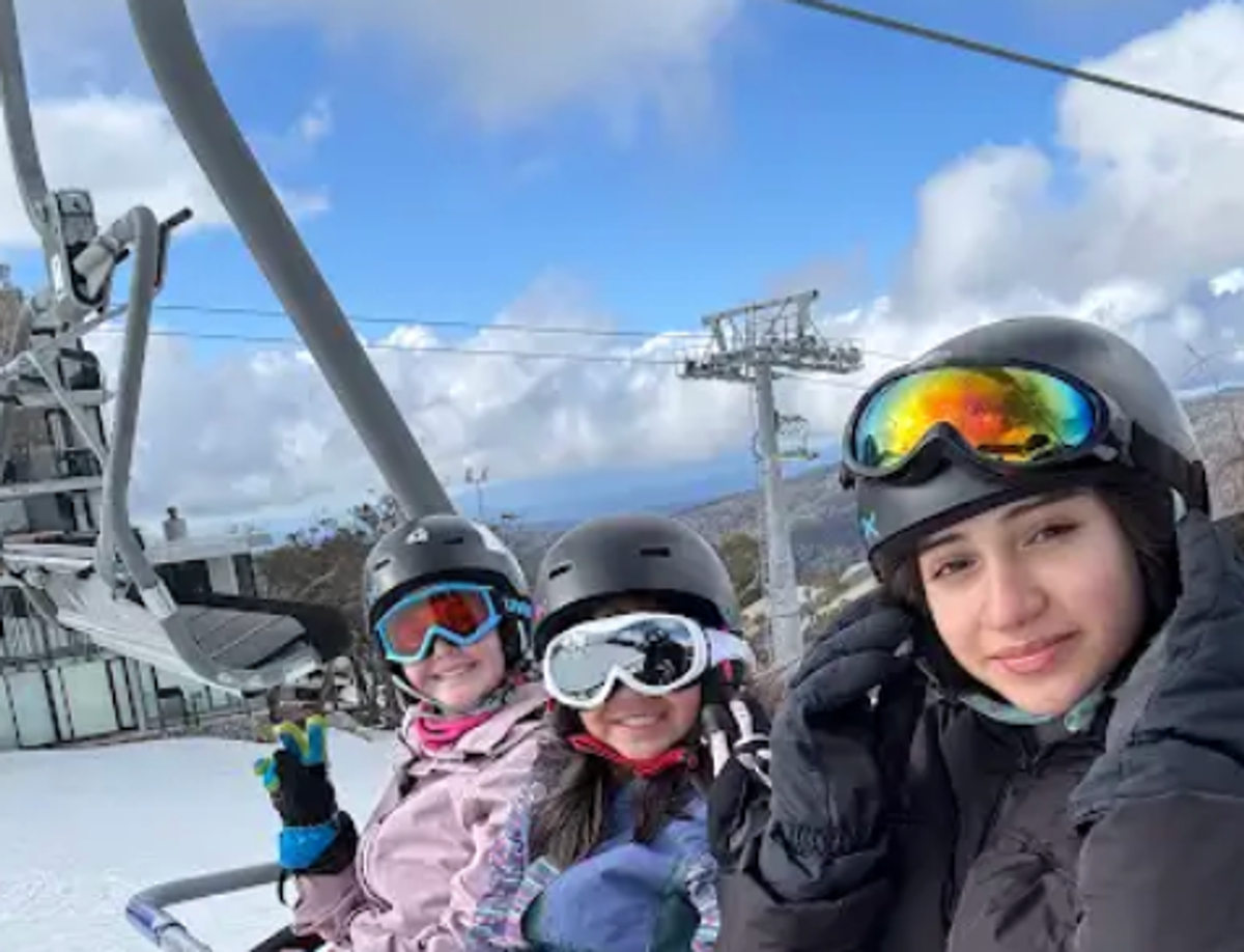 Before we knew it it was day two and not just any day but our first ( and only ) full day of skiing!Chloe was super tired because she awoke at 5.00am. While Lillian was sound asleep but anyways we all headed towards the ski rentals to borrow our ski’s from the day before and we headed up the mountain again, everyone was used to the pain by now, and once we got into our groups again we headed off. After a few minutes of ski demonstrations, we skied down the mountain and went up a ski lift. It was frightful at first but in the end most people got the hang of it. Then we headed to lunch, where we had a huge variety of meals and juices! Then we went for free skiing for 3 hours! Me, Lillian, my mum and Temwa went skiing down the mountain from both the middle and the tippy top! It was super foggy but it was worth it! After a wholesome dinner we watched Ice age while celebrating Harrison’s birthday, and went downstairs to shower and sleep. I played card games with my friends whilst others watched bluey on their tv.