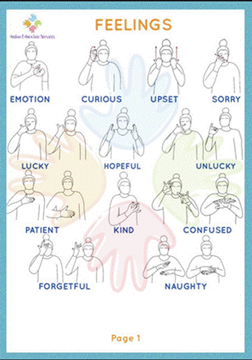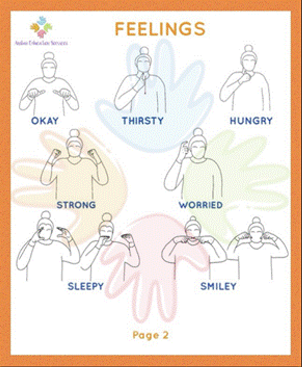 Ask your children to sign to you how they felt today and encourage them to teach you the signs they are picking up on!