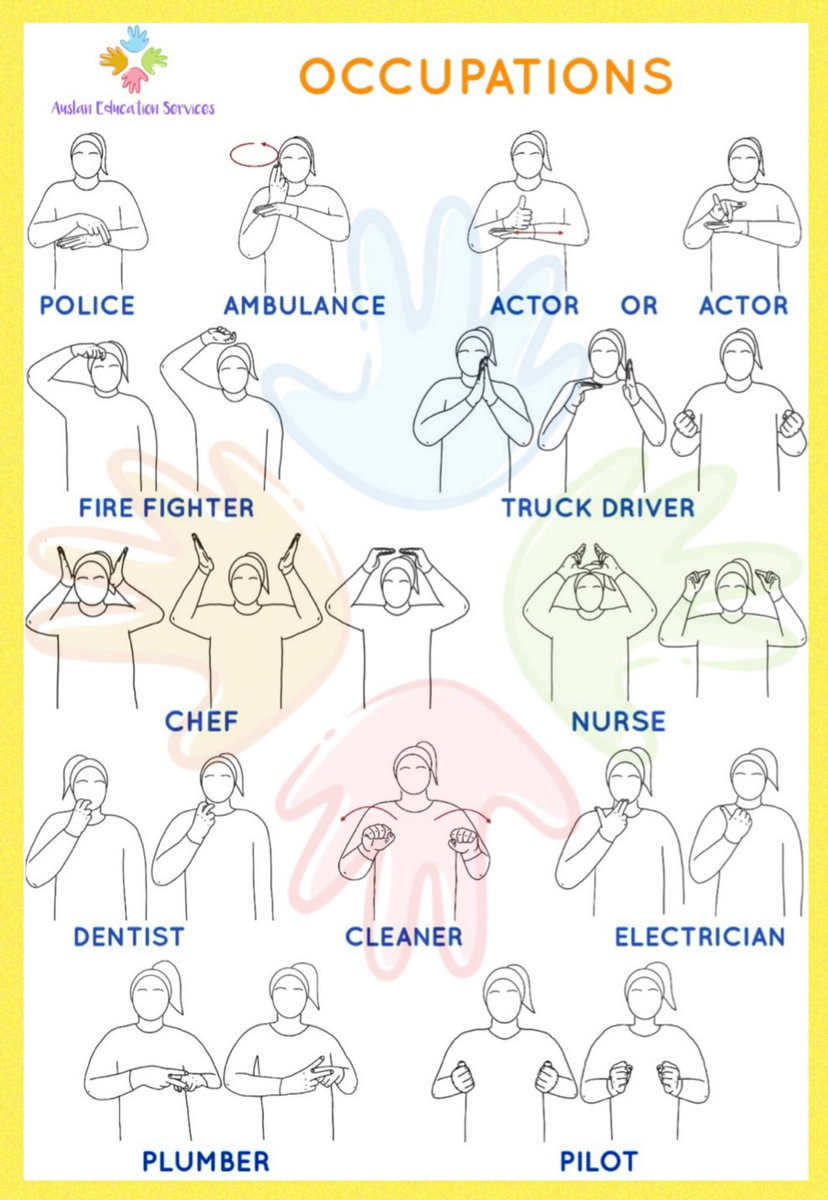 I’ve attached a visual guide of the occupation signs we’ve been learning so you can continue practising at home together.