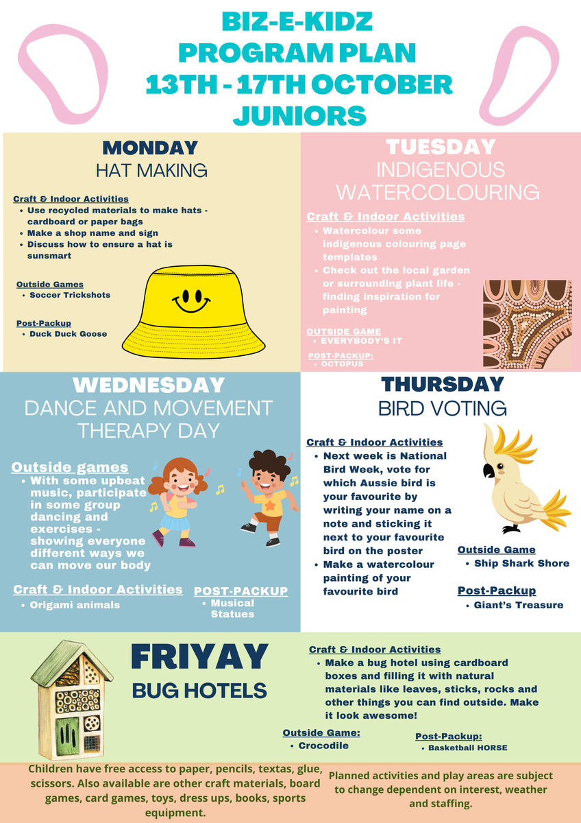 Since the start of the Spring Holidays, we have been in our SumSmart period. Please ensure your child has a hat at Biz-E-kidz. See grade 6s Matthew and Neil’s clever hat design, using iris grass and coles paper bags! They learnt about what makes a hat sunsmart and designed accordingly, launching their small business with success.