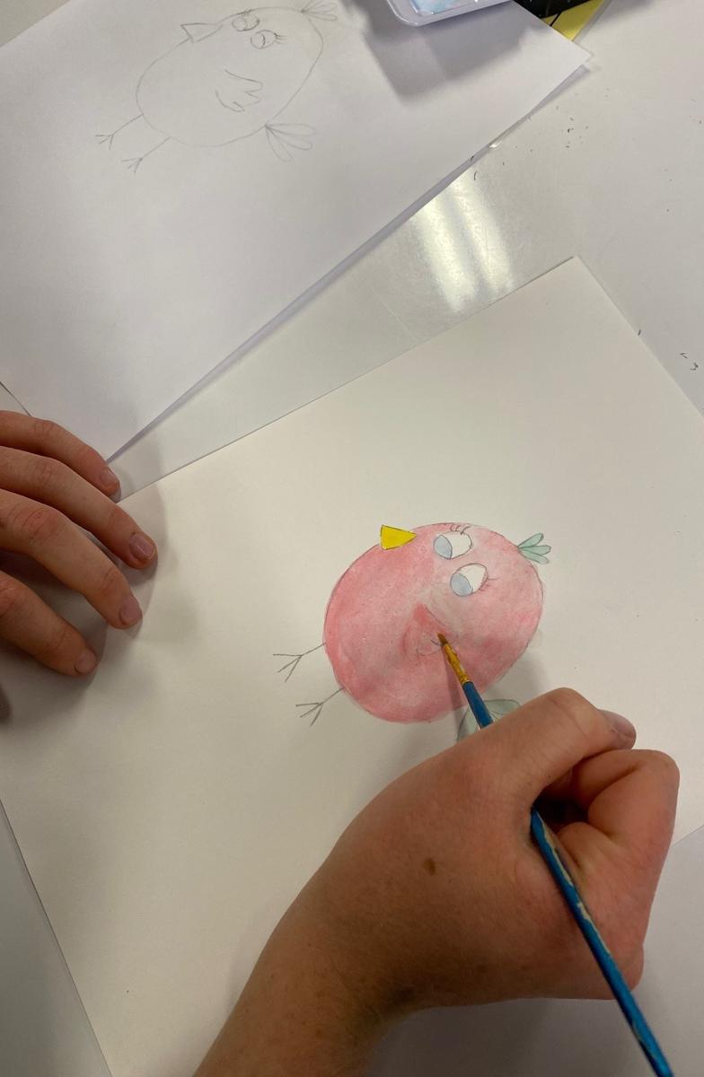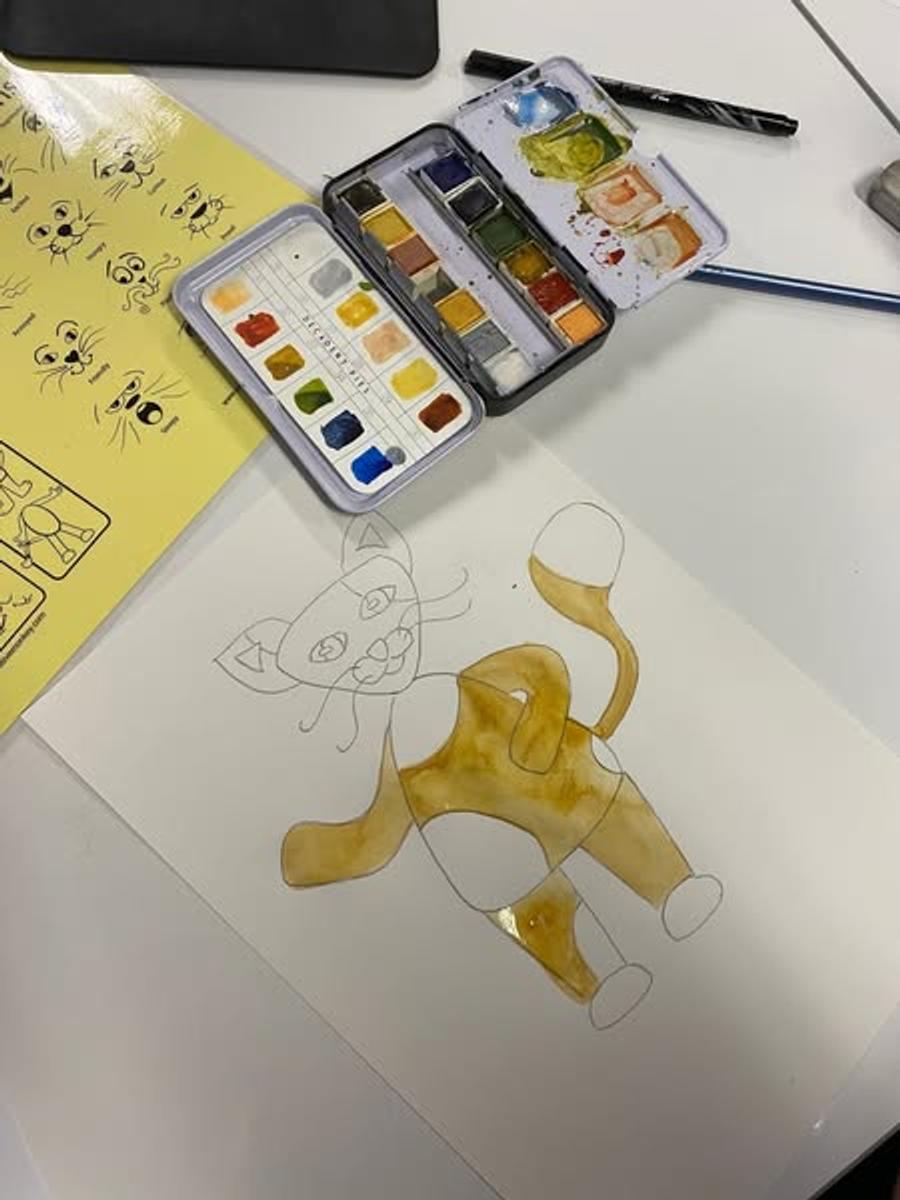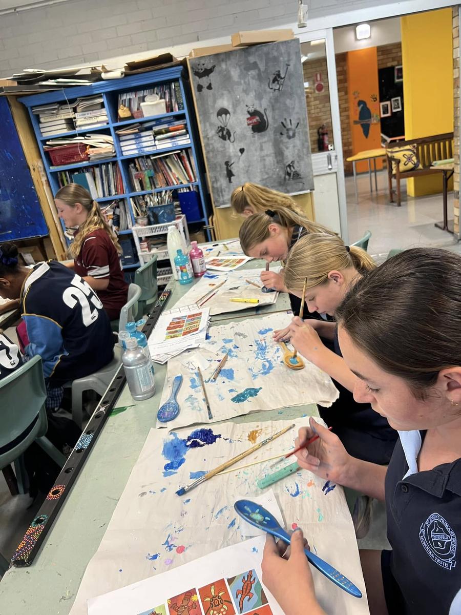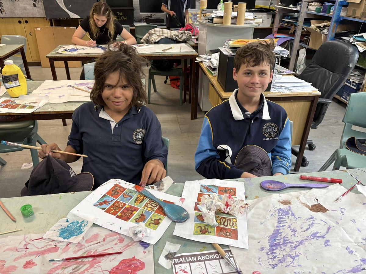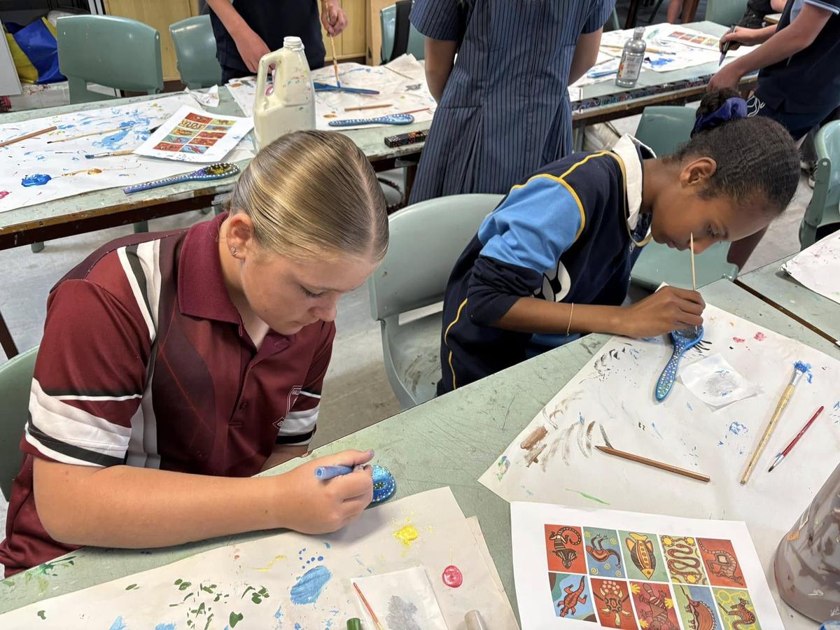 Students are engaging in enjoyable art activities during lunchtime with Kylie.