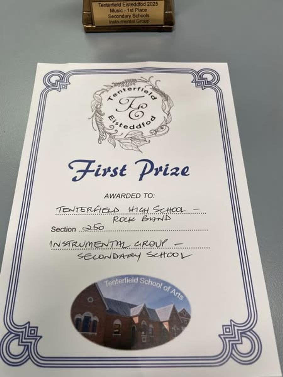 Congratulations to the THS Rock Band for their outstanding performance at the Eisteddfod, securing 1st place in the secondary schools instrumental group category!