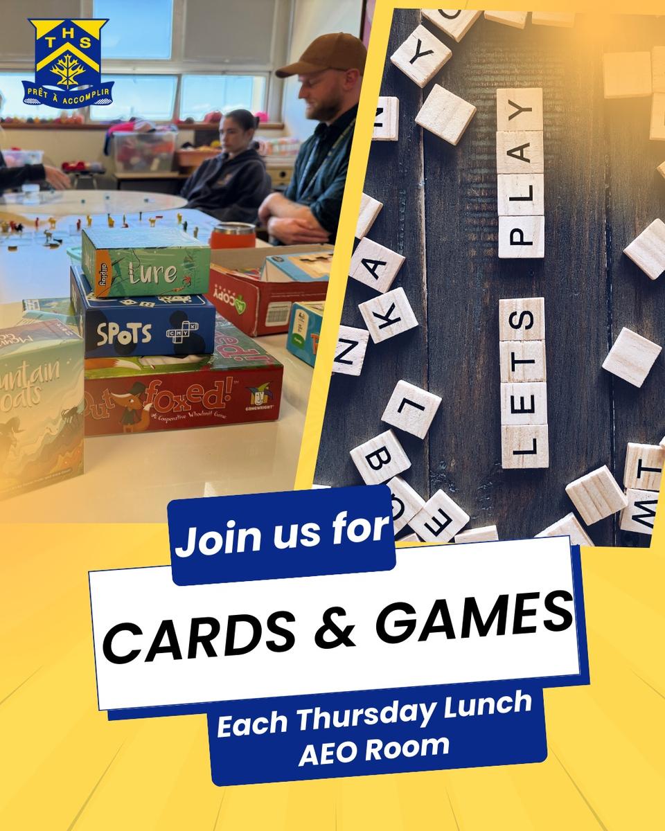 Have you heard? The Wellbeing Faculty is hosting a Cards and Game Play event every Thursday during lunchtime. Bring your lunch, enjoy a variety of card and board games, and take the opportunity to meet new friends while learning something new. All students are welcome to join in on the fun!