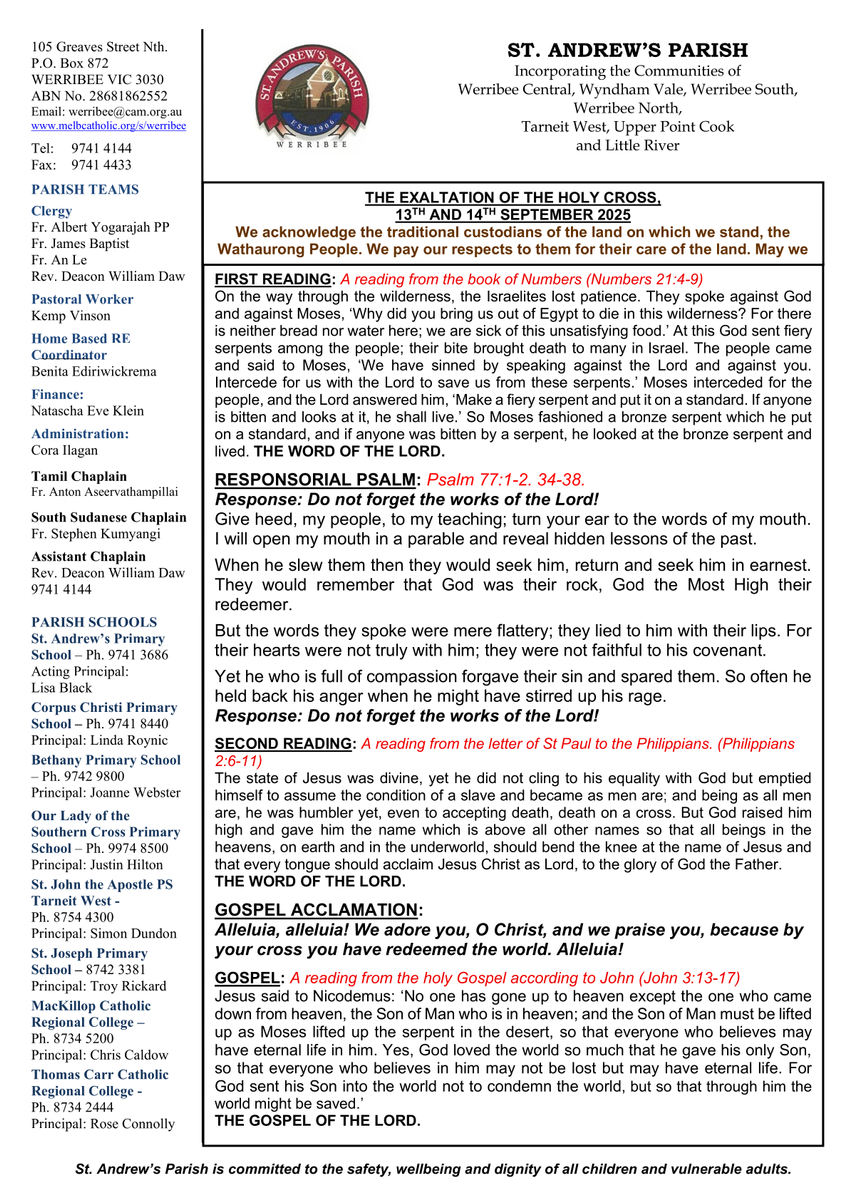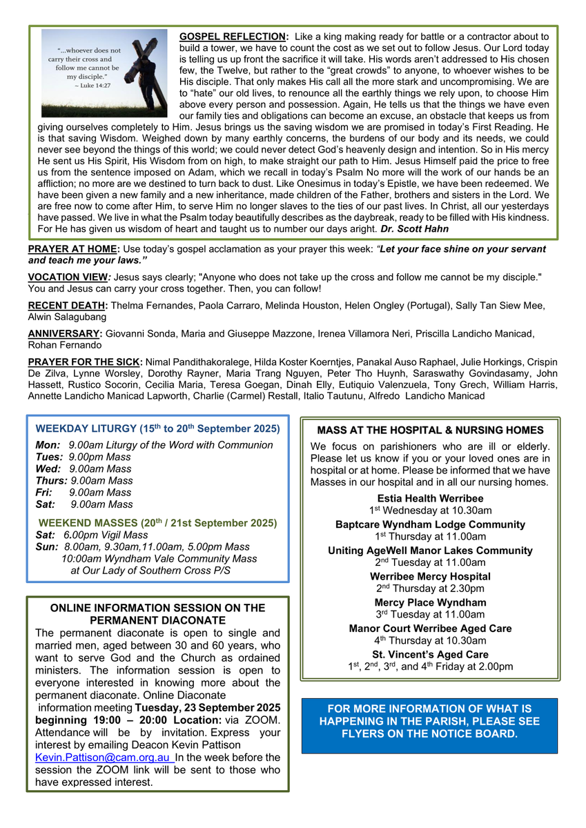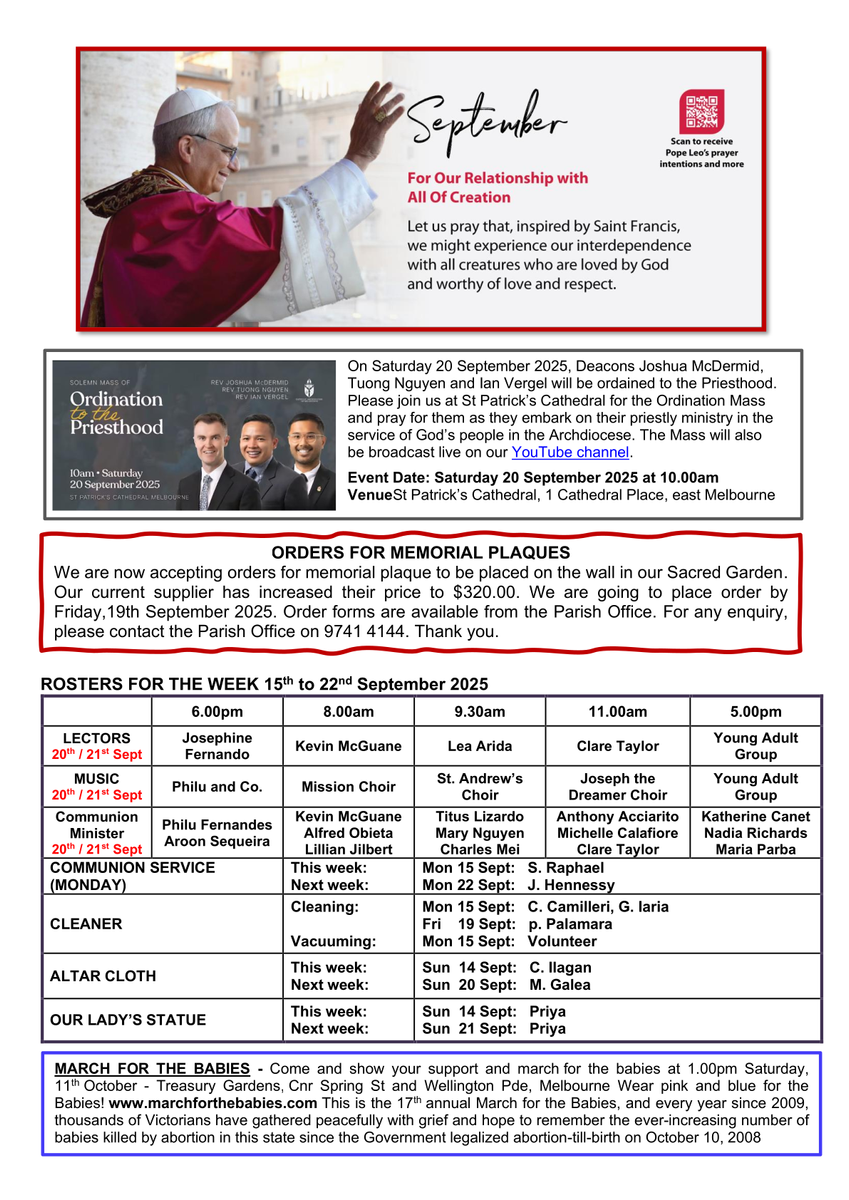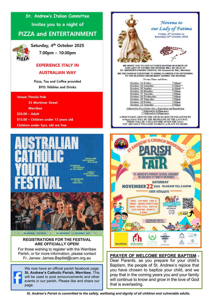 - Saturday 25th October - Community Mass @ 5:00 School Hall