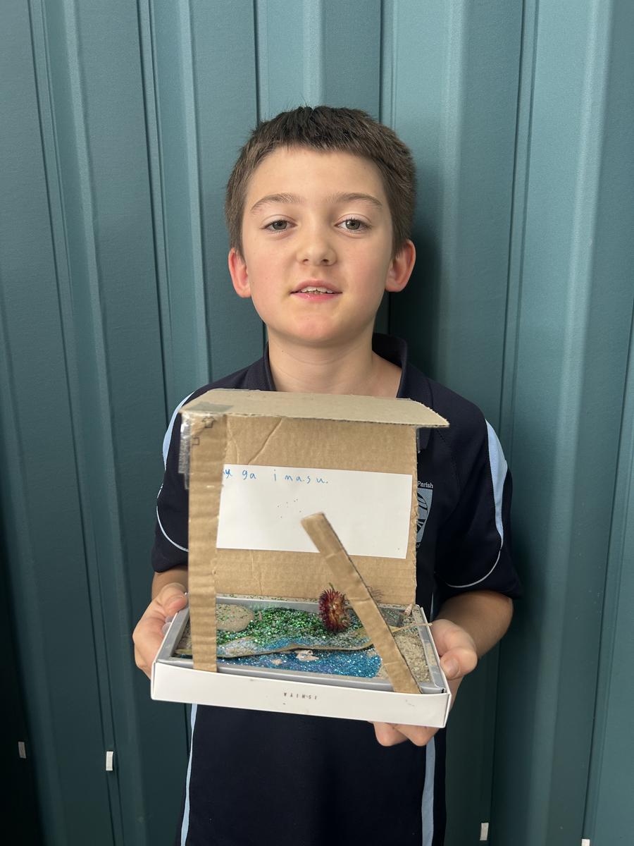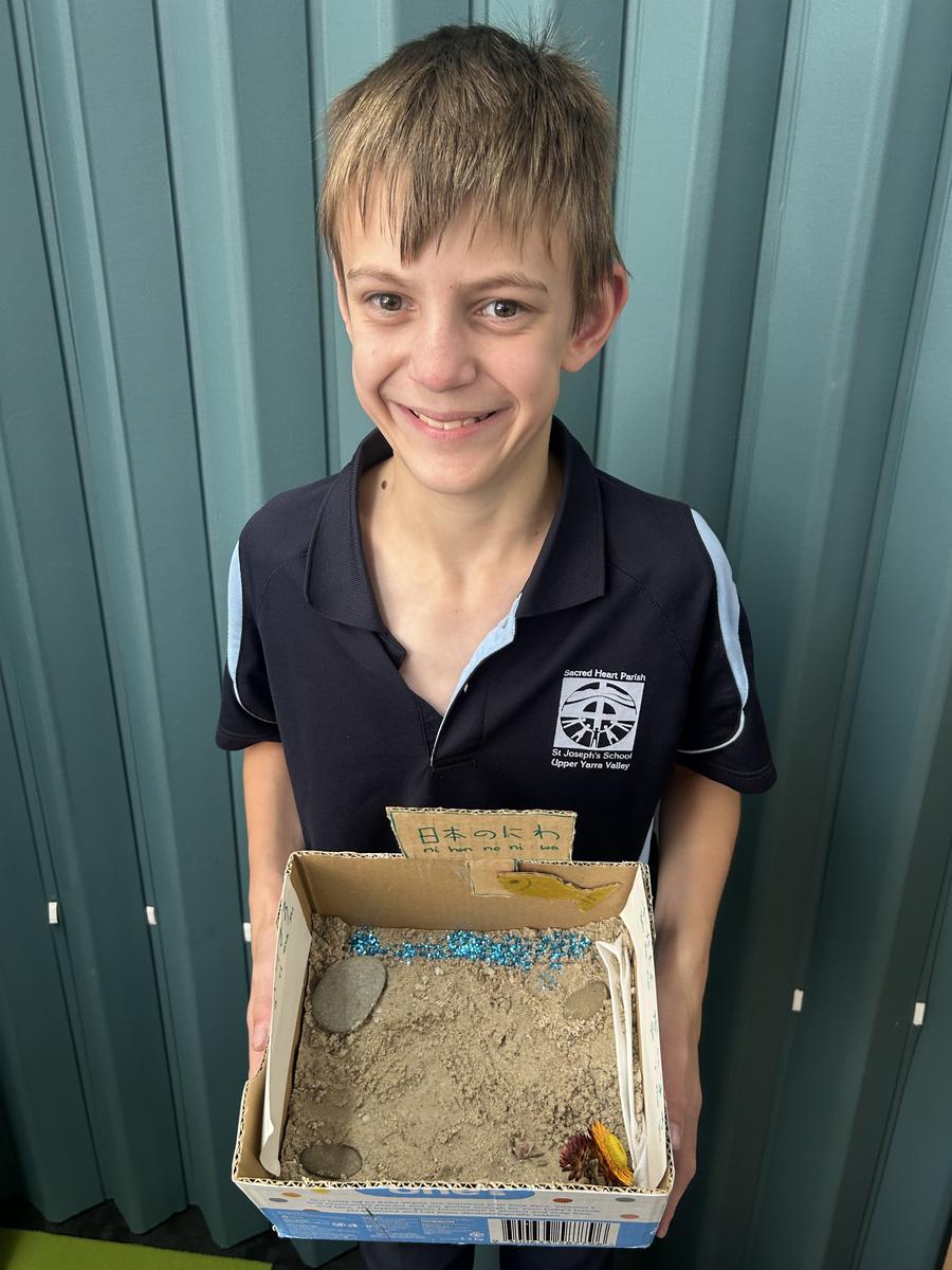 Grades 4 to 6 have been introduced to some nature kanji and learned to express the existence of things or animals/people. They made their Japanese gardens individually this week and practiced how we say existence by using あります(arimasu) and います(imasu).
