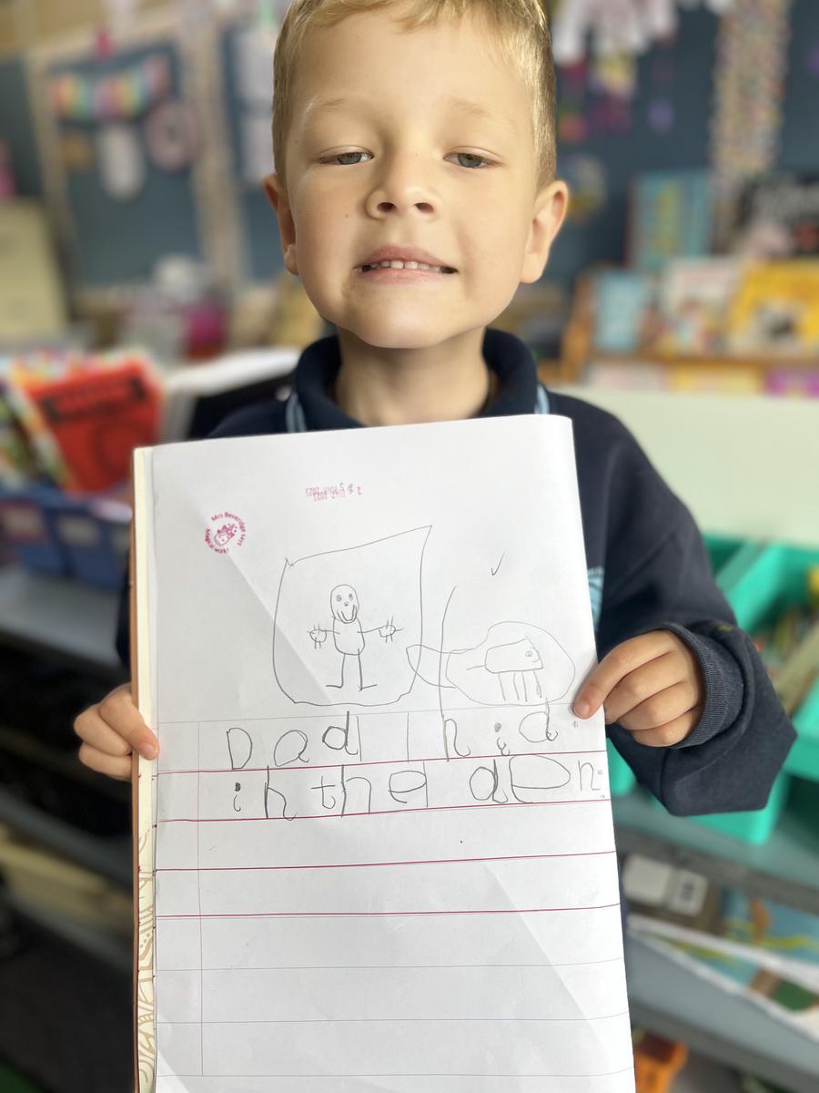 The Foundation students have been learning how to write a sentence using the letters they have already learned. When they write sentences, the Foundation students have been practicing spacing out their words and writing on the lines!