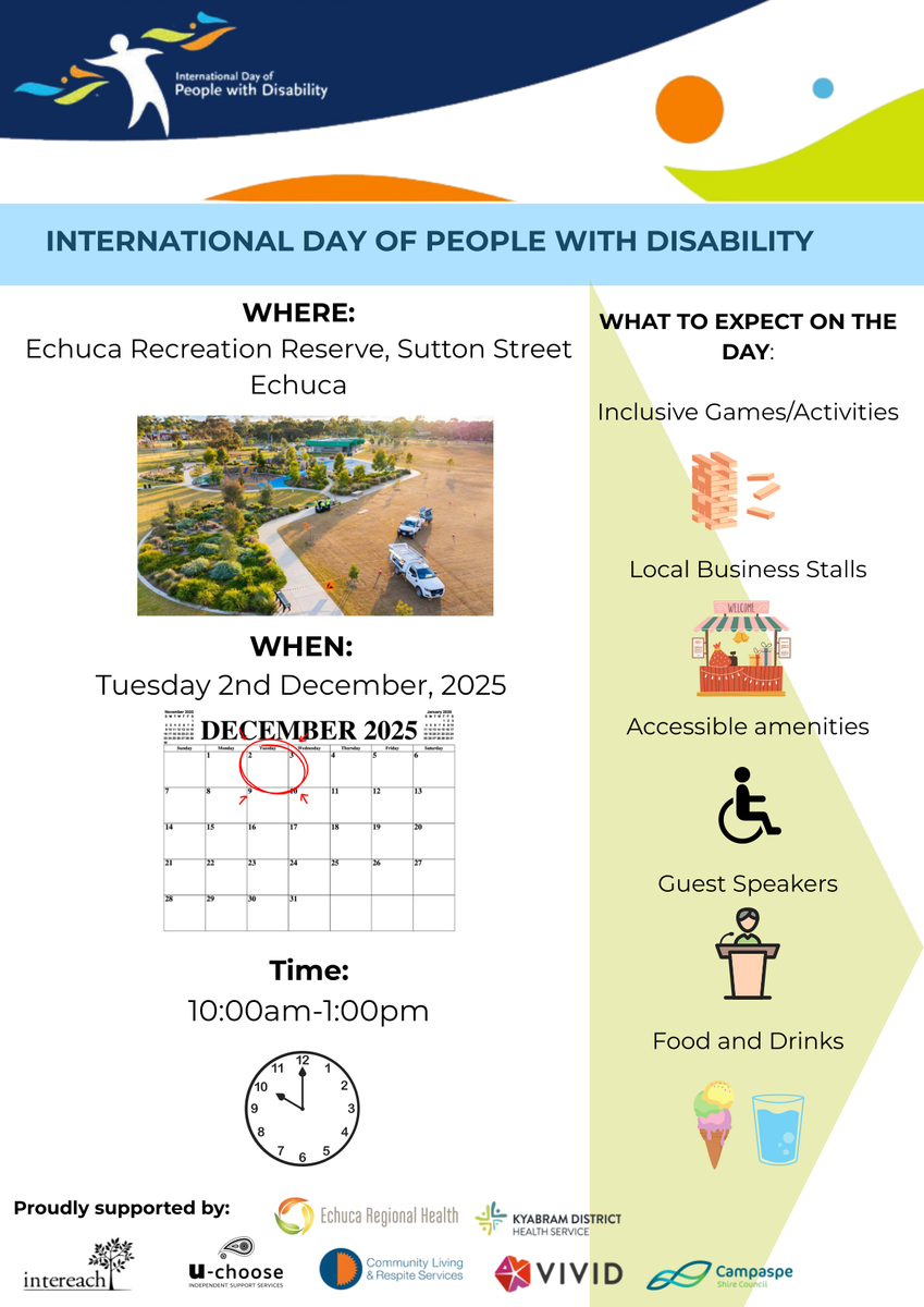 INTERNATIONAL DAY OF PEOPLE WITH DISABILITY - TUESDAY 2ND DECEMBER @ ECHUCA EAST RECREATION RESERVE