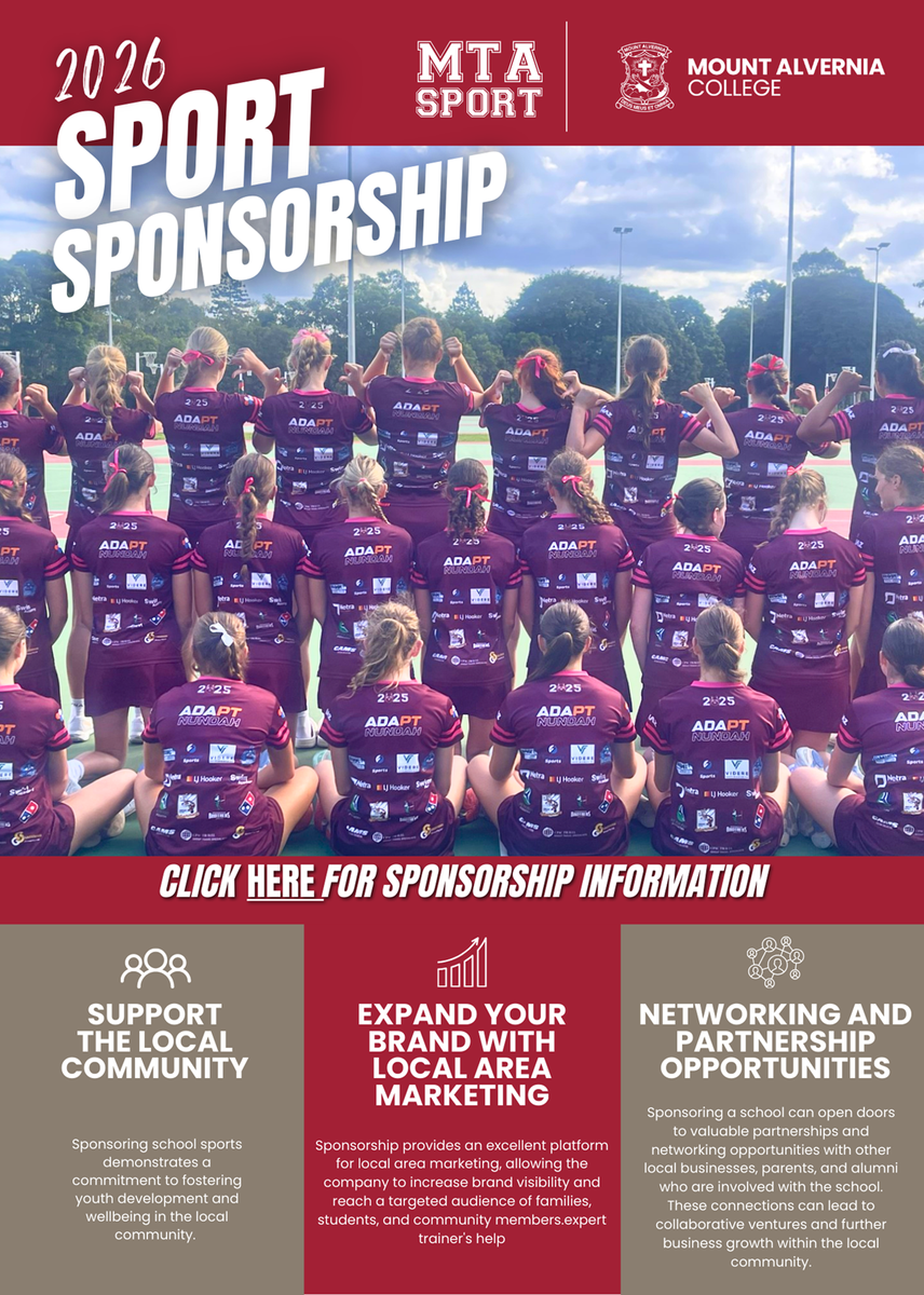 Mount Alvernia College is excited to invite your organisation to be part of our 2026 Sport Program as a valued sponsor. With a strong tradition of excellence, teamwork, and community spirit, our sporting program provides the perfect opportunity to showcase your brand while supporting young athletes to achieve their best.