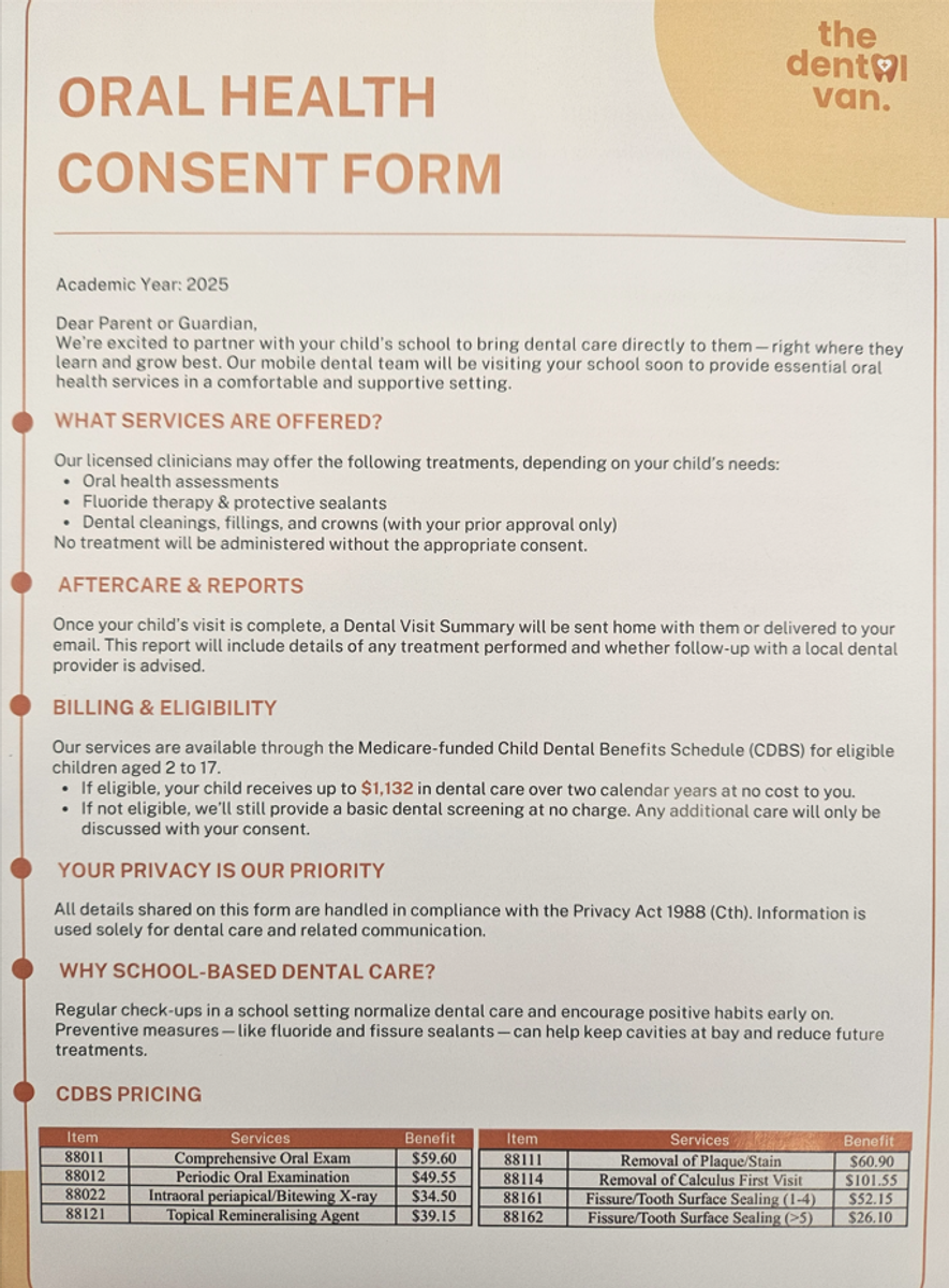 Parents can opt in their children to visit the dentist by completing and returning a The Dental Van visit consent form which will be sent home on Friday 31st October.