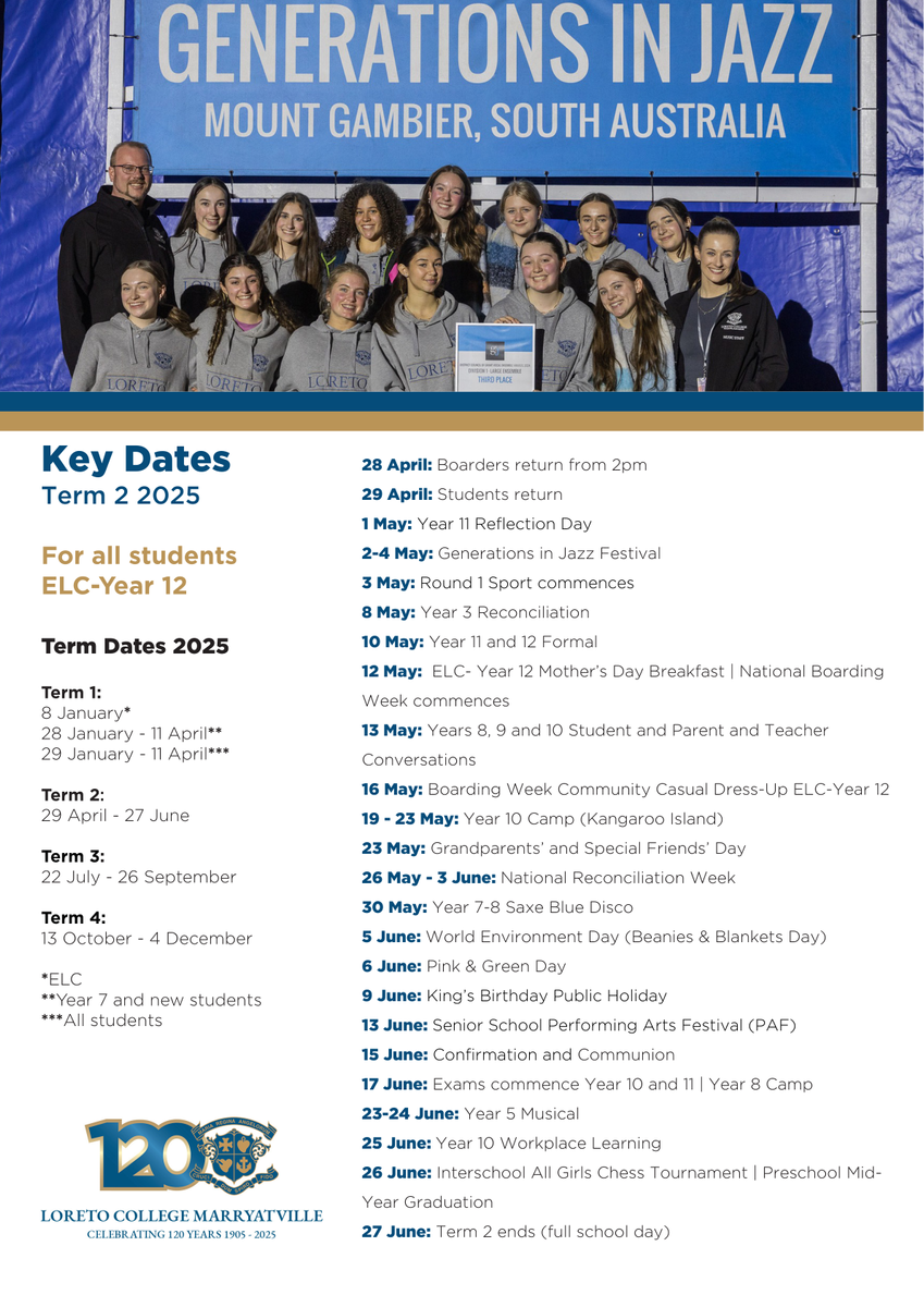 Wednesday 9 April is the date of our evening Pre-Generations in Jazz Concert with Rostrevor College. Taking place in the Performing Arts Centre at 6.30pm, this concert will feature six Loreto and three Rostrevor ensembles, all of which are travelling to Mt Gambier on 2 May to compete in the annual Generations in Jazz Festival.