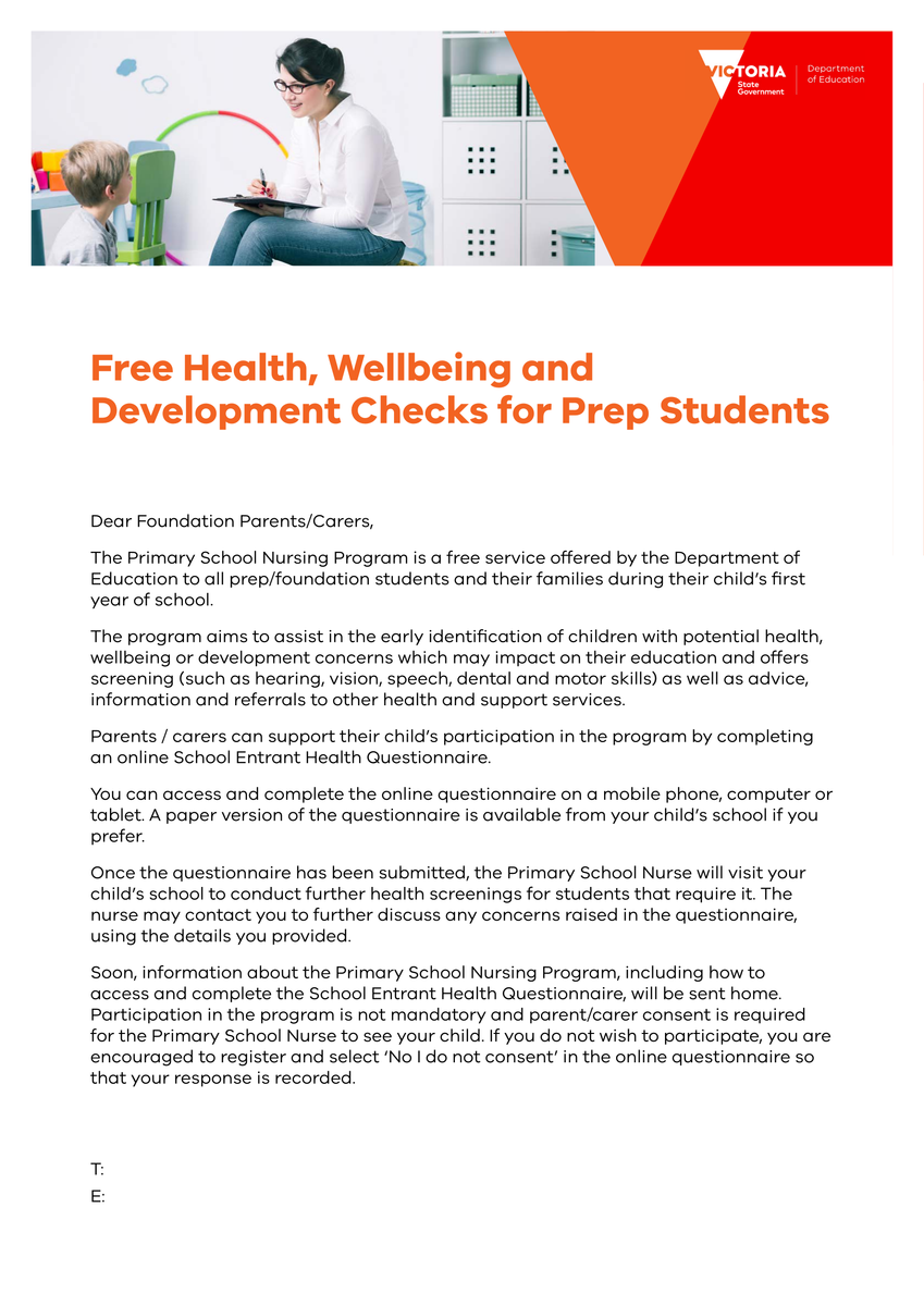 DOCUMENTATION - It is of utmost importance that our school is provided with up to date information. Documentation that is required has been sent to the relevant families, most recently via email. Please complete and return to the Health Centre as soon as possible.