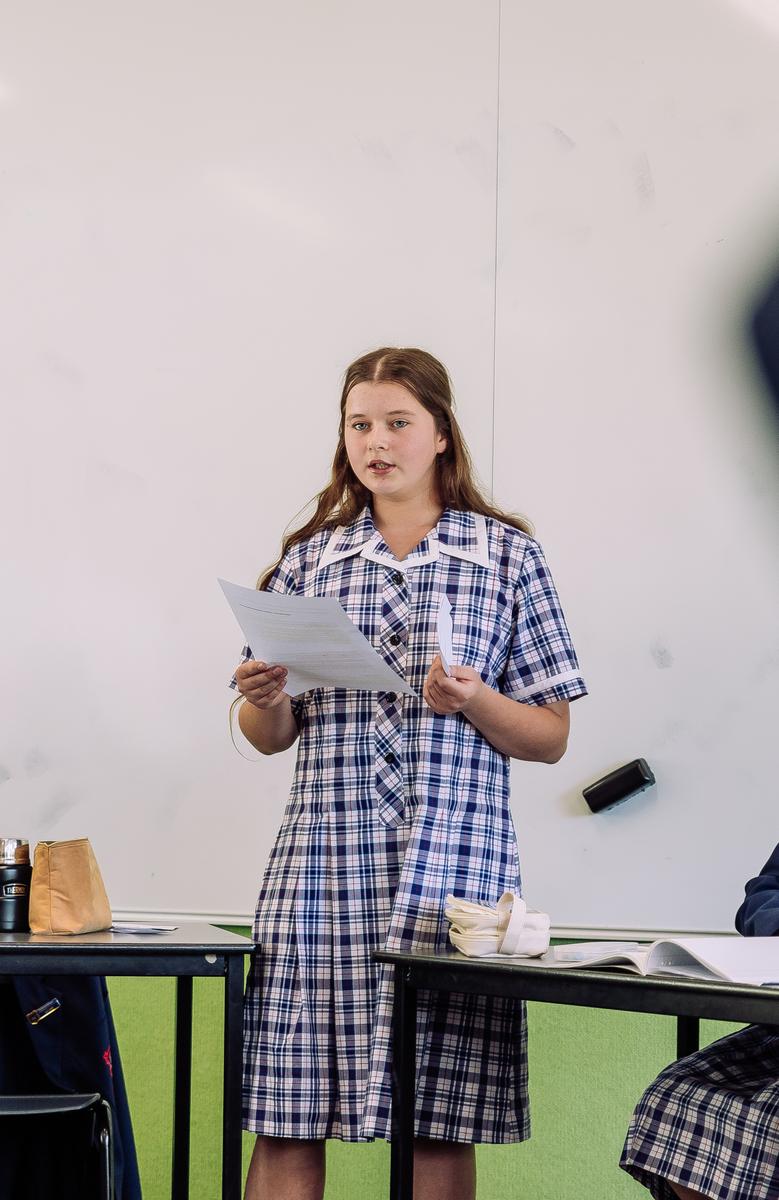 The Year 9 Debating Team has delivered an extraordinary performance this season showcasing great teamwork, diligence and determination. Team 2 was victorious against Tintern Grammar, taking out the title of Ringwood Regional Winner, represented by Nicole M (9.9), Priscilla P (9.12) and Leah C (8.5). A special congratulations goes to Priscilla, who was awarded Best Speaker for the Region. There were 18 debating teams in our region, so this is a remarkable achievement. Her articulate delivery, sharp rebuttals and diligent preparation earned her this well-deserved recognition.