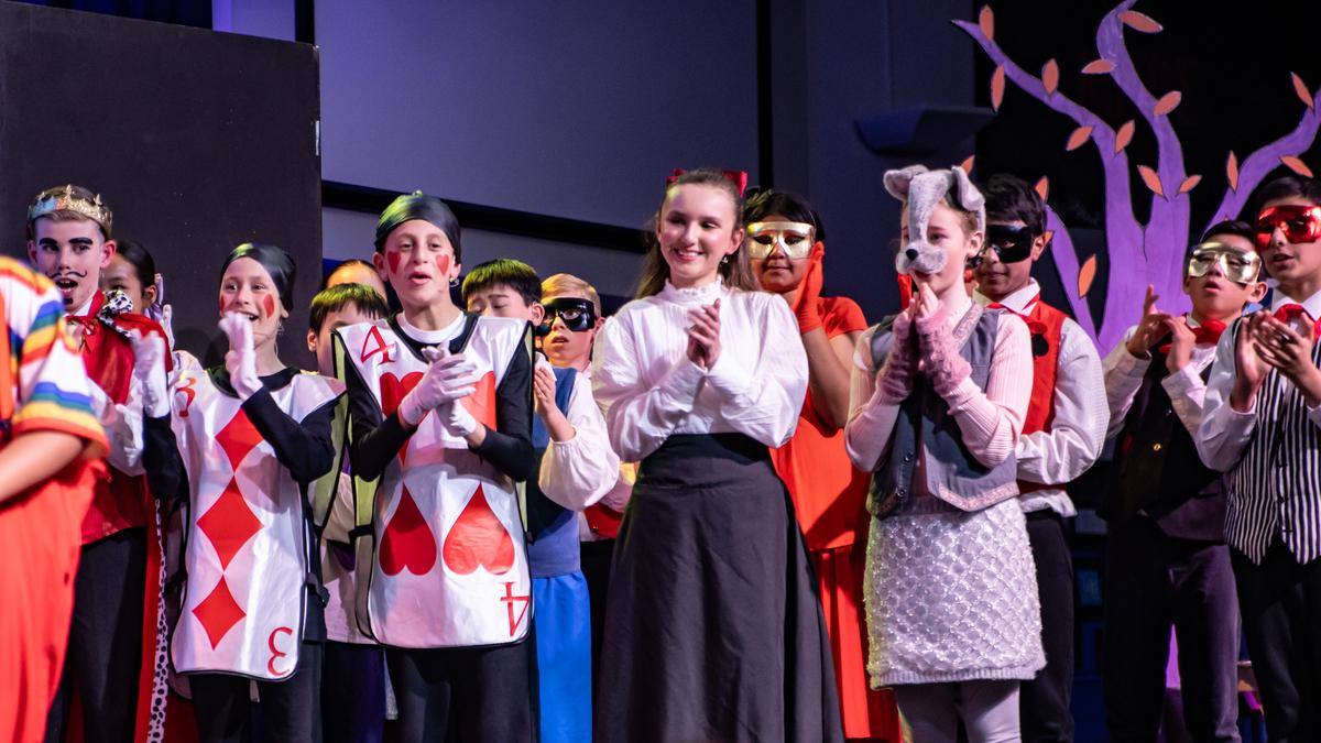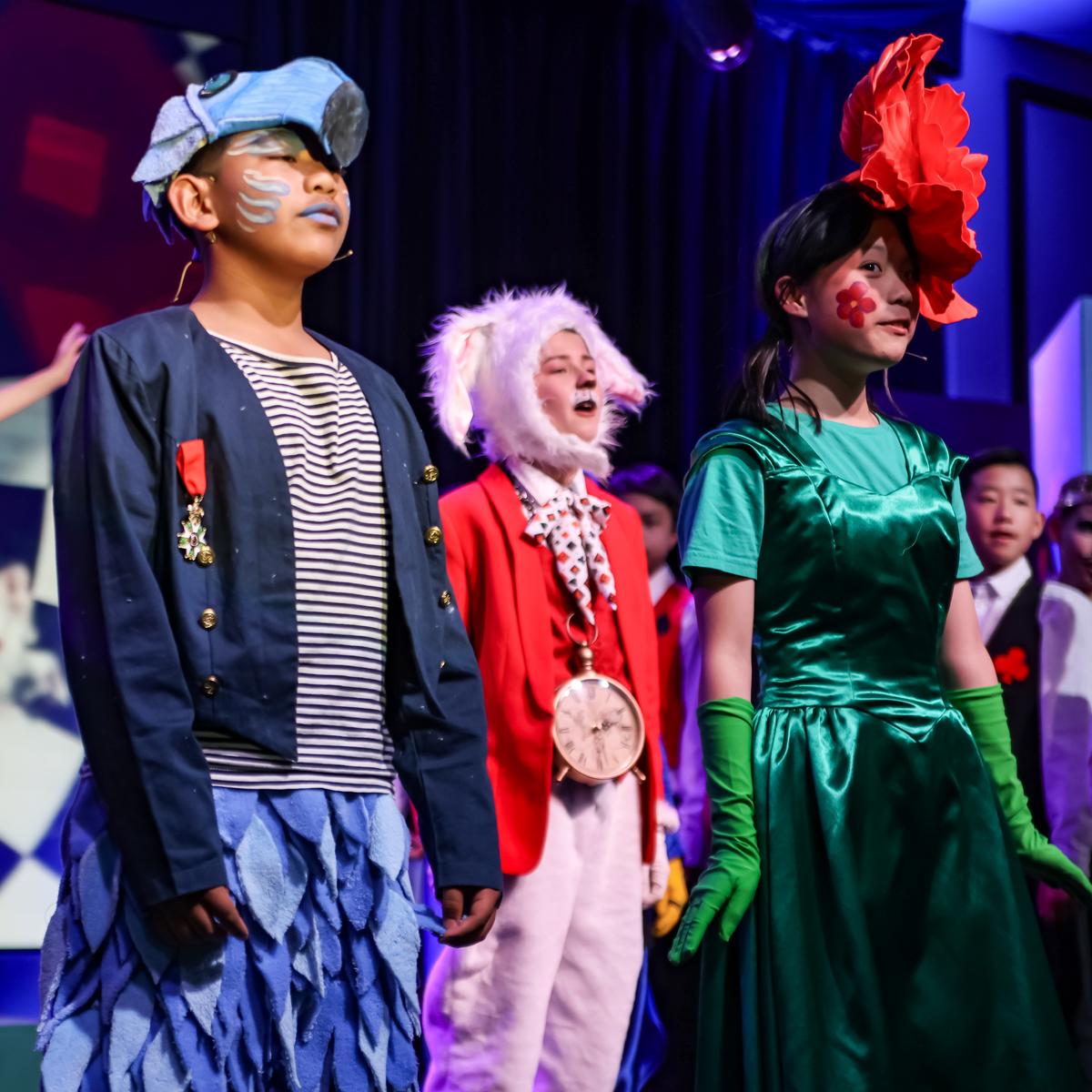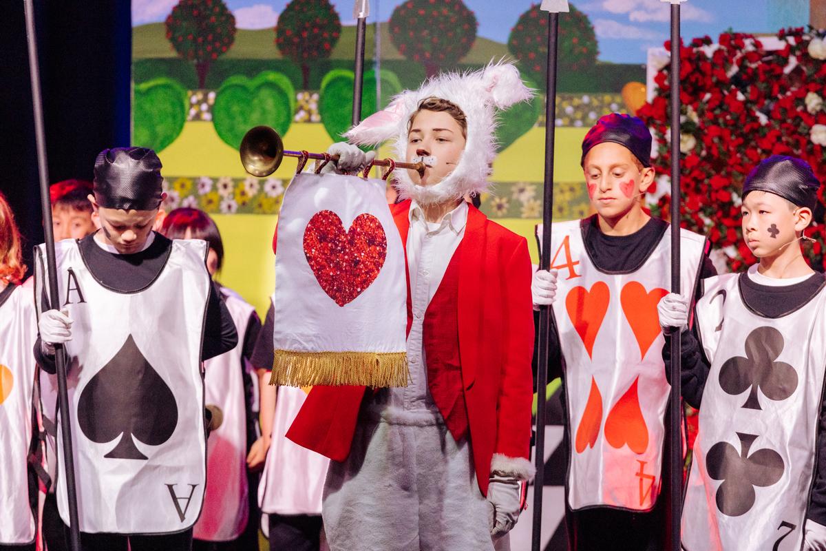 The whole of the Junior School, from Prep to Year 6 joined together to present the musical Alice in Wonderland JR.