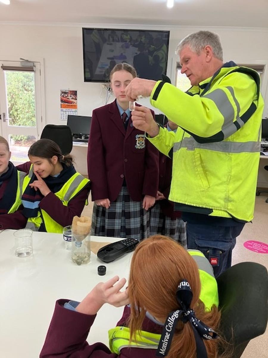 Our time at the Treatment Plant was spent in two groups which swapped around half way through the session. One group had a tour of the facility with facilitators who explained the processes and operations of the plant. The other group had an opportunity to do some hands-on activities, using various materials to try to filter water, testing its quality to assess how well they did.