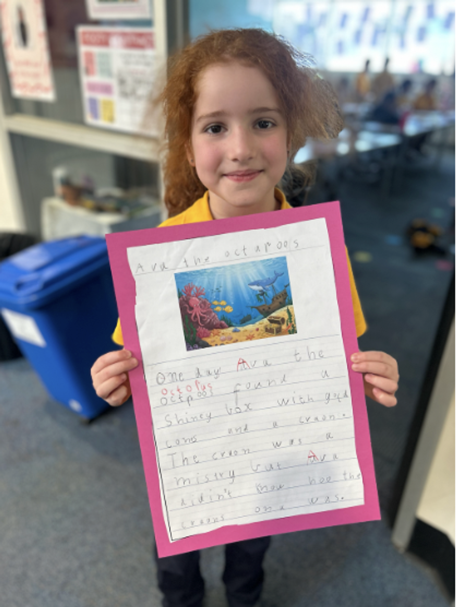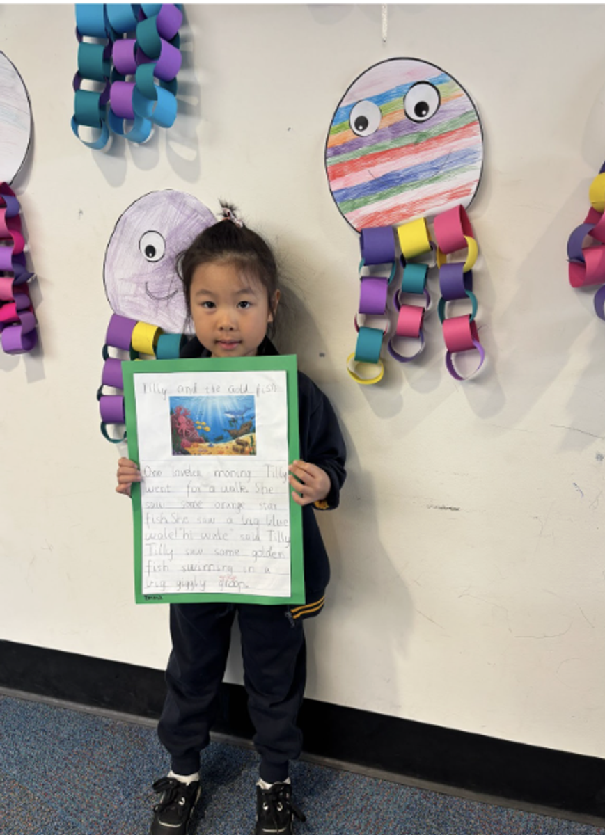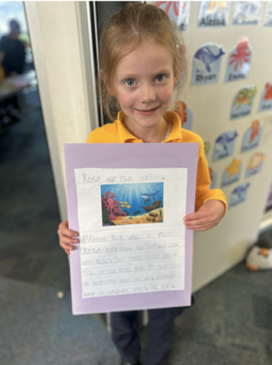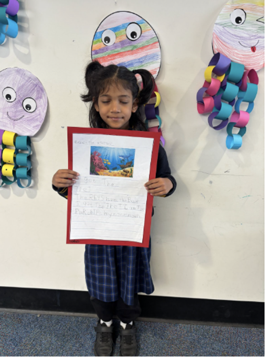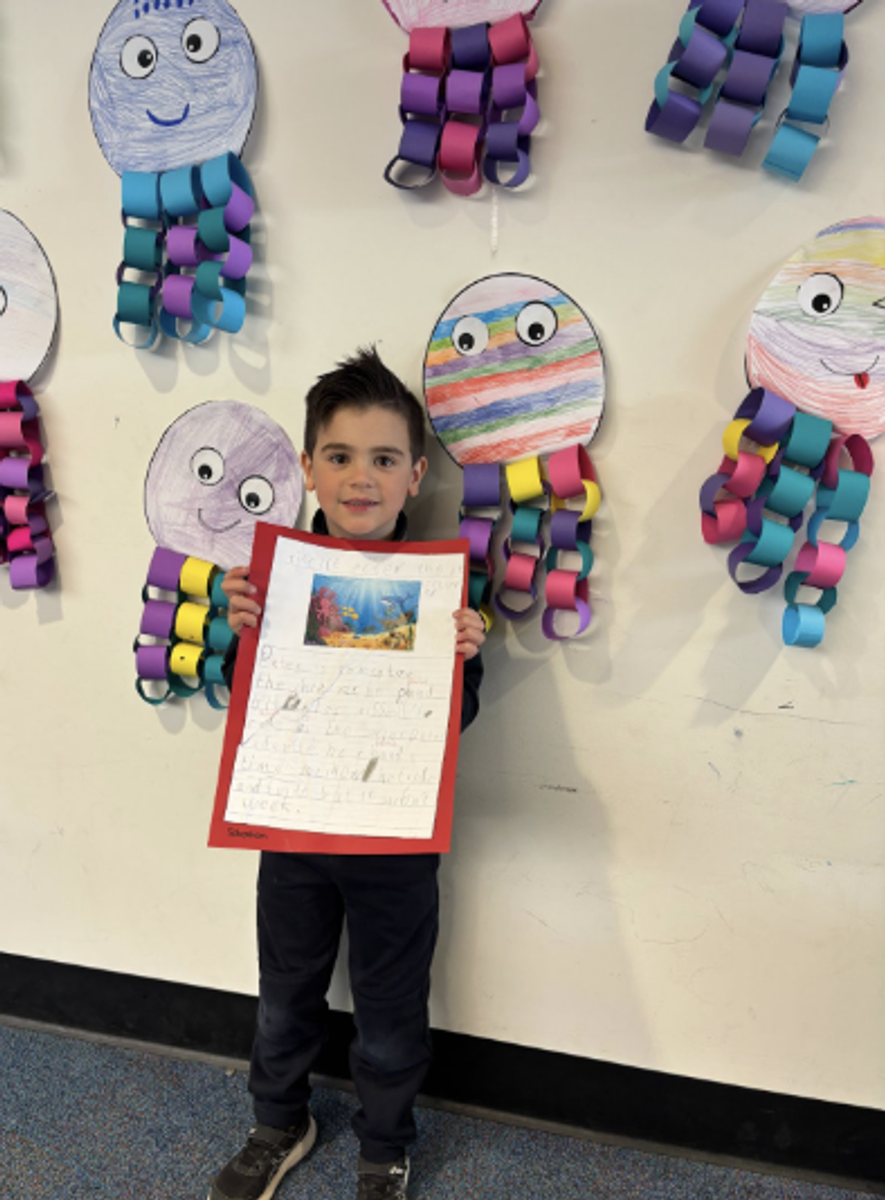 In our Rocket Writing sessions, we continued building super sentences and creating imaginative texts. Students let their imaginations run wild, writing about deep-sea adventures, colourful coral reefs, and fascinating sea creatures. Along the way, we focused on remembering to use capital letters, full stops, finger spaces, and correct punctuation to make sure our sentences were complete and polished.