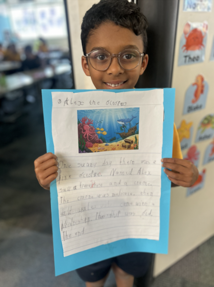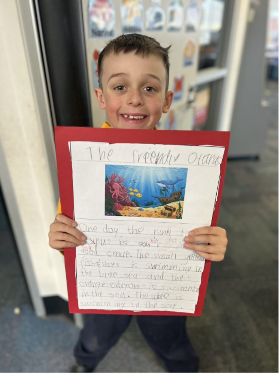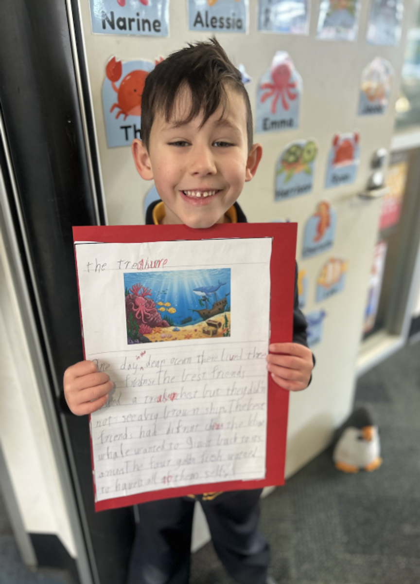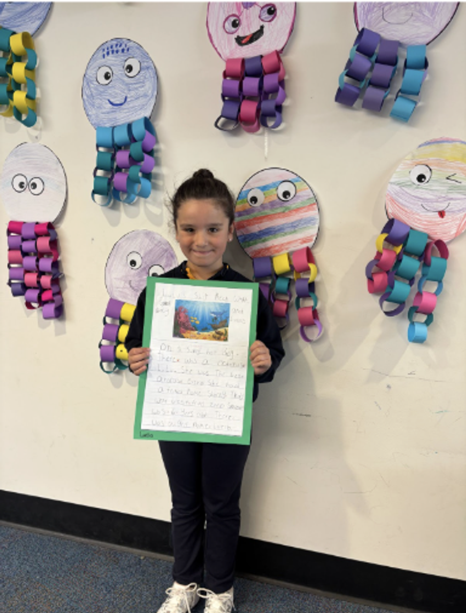 In our Rocket Writing sessions, we continued building super sentences and creating imaginative texts. Students let their imaginations run wild, writing about deep-sea adventures, colourful coral reefs, and fascinating sea creatures. Along the way, we focused on remembering to use capital letters, full stops, finger spaces, and correct punctuation to make sure our sentences were complete and polished.