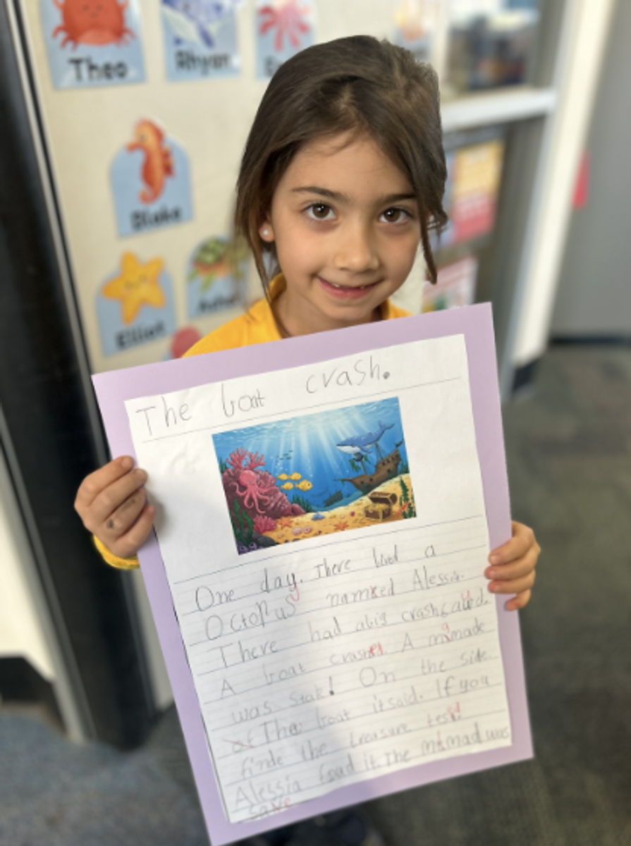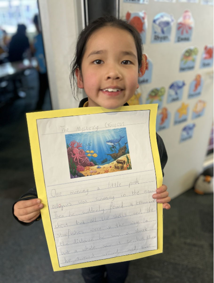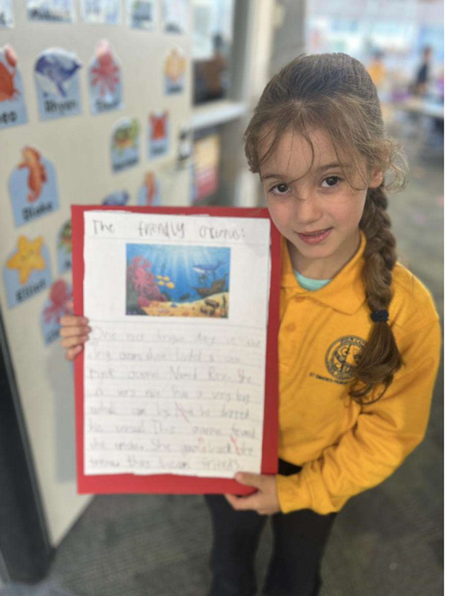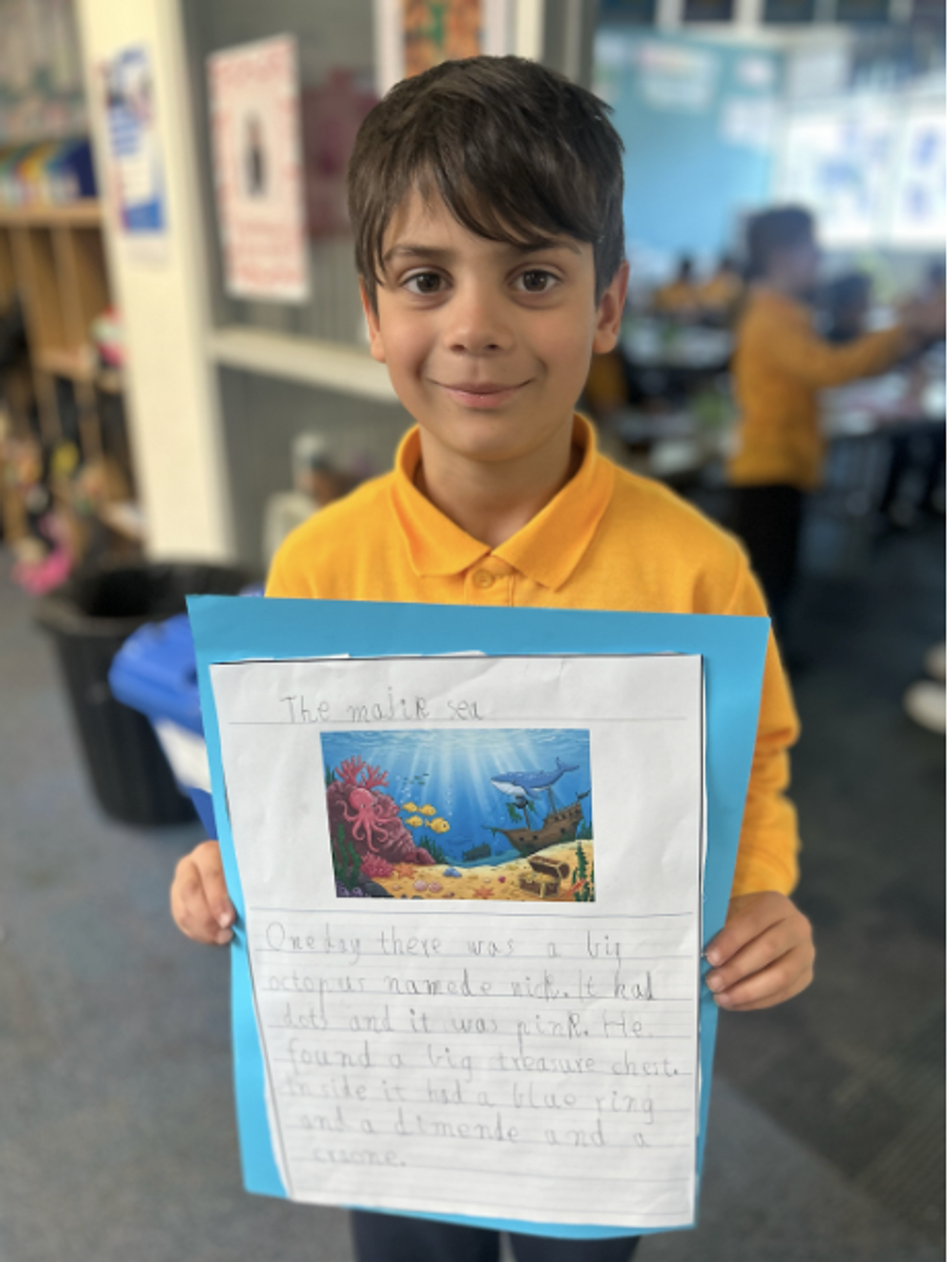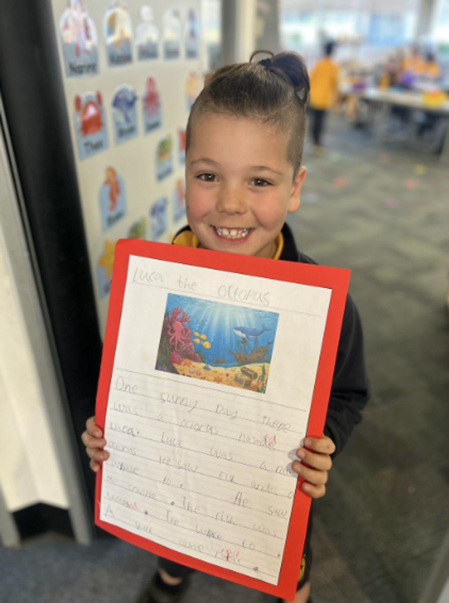 In our Rocket Writing sessions, we continued building super sentences and creating imaginative texts. Students let their imaginations run wild, writing about deep-sea adventures, colourful coral reefs, and fascinating sea creatures. Along the way, we focused on remembering to use capital letters, full stops, finger spaces, and correct punctuation to make sure our sentences were complete and polished.