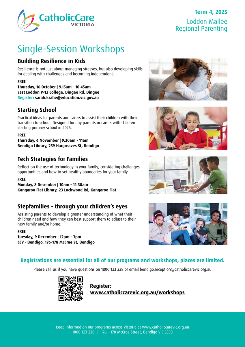 CatholicCare Victoria offer a support system for parents and families. They will be running a number of FREE parent information sessions in Term 4.