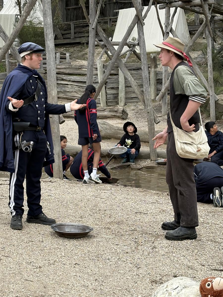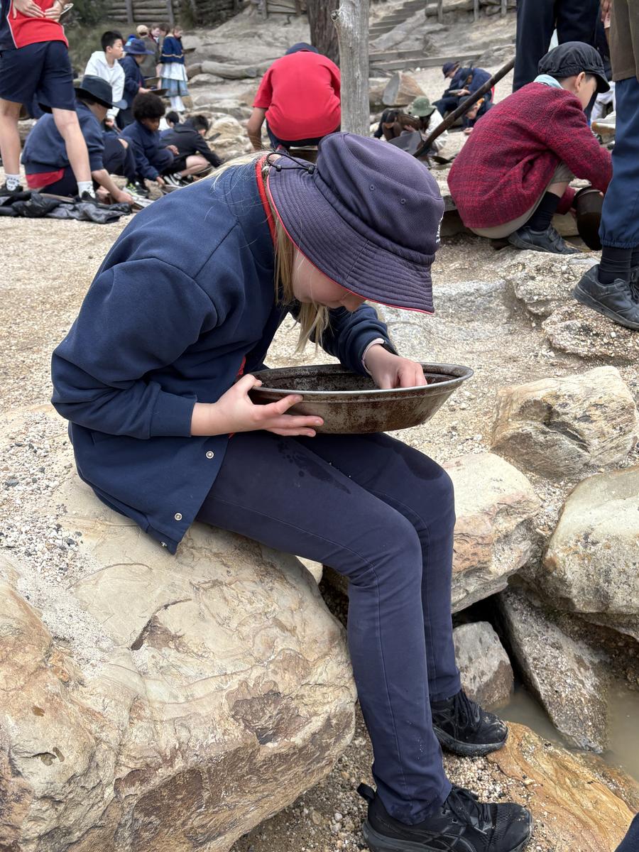 Once there, students experienced gold pouring demonstrations, panned for gold, explored historical artefacts, and even attended a recreated 1854 school session. These hands-on experiences brought our learning to life and helped students make meaningful connections to our history unit on immigration, social hierarchy, and life during the gold rush.