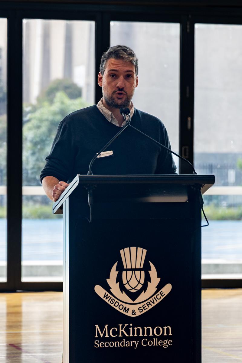 Jessica Fellini, Amelie Maclennan, Alex Rowe Hansen and Mark Serebro (Year 12), Sports Captains for Gilmore provide the sports report