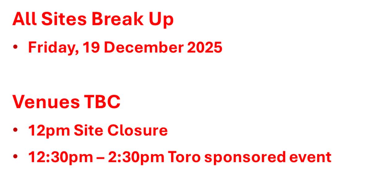 Note: Working skeleton staff to be pre-approved by manager, Leave to be entered into ESS ASAP, Friday - Early closure for all employees