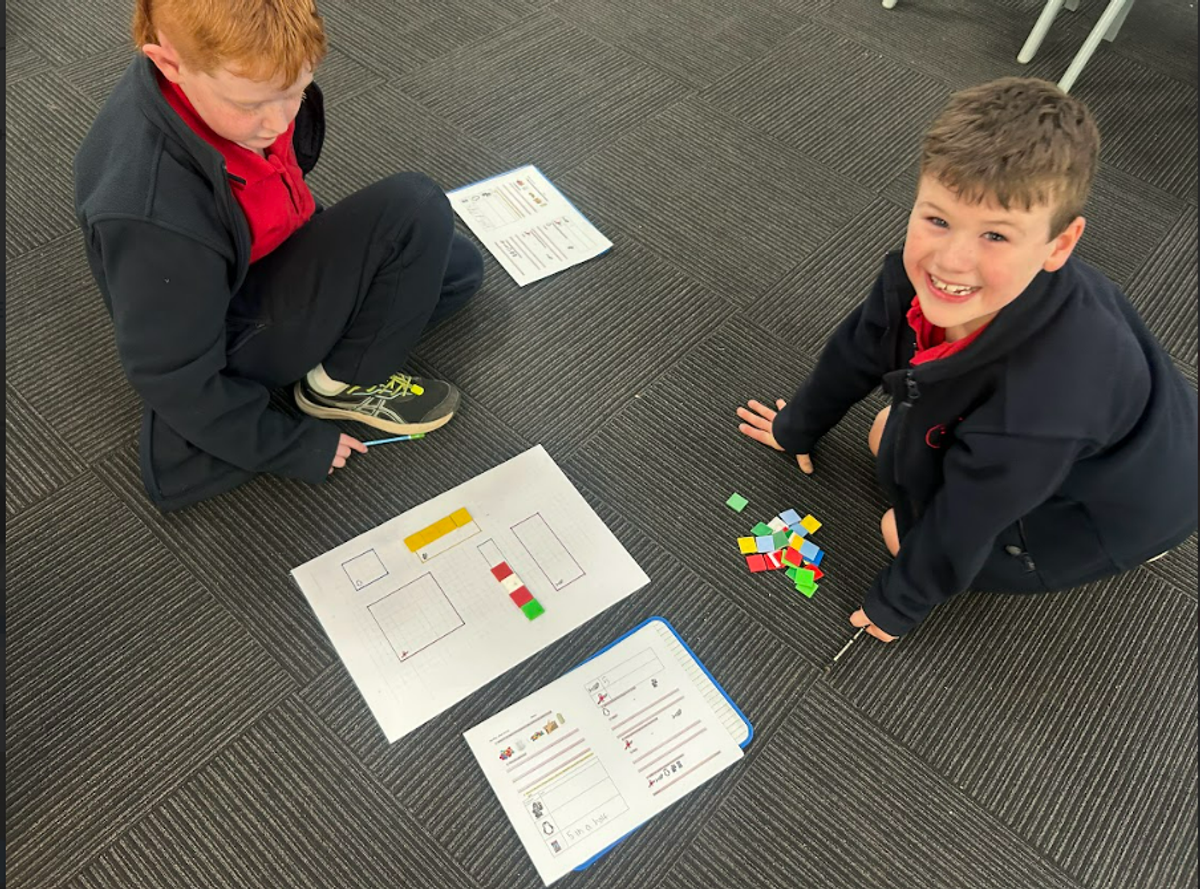 In our applied measurement unit, we have begun introducing the students to the concept of area. The students have explored how we can use different methods such as handspan, counters, square tiles and paper to measure the area of a 2D shape. The students then discussed how we can get different results when we measure the area with different objects and discussed what might be the best method to measure a book, such as, is it better to measure a book using handspan or with square tiles. The students will be further practising these skills by using square tiles to measure the area of zoo enclosures.