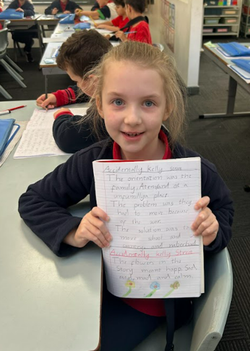 Over the past two weeks, we have begun our new literature unit, ‘Imaginative Texts’. Over the course of this unit the students will engage with texts that encourage the reader to think deeply, ask questions and use their imagination to understand the text and the big ideas that the text is portraying, through the orientation, problem, solution and resolution of the text. The first text that the students explored was, ‘The Boy and The Elephant’. This book is a wordless book, where as a class we discussed how the illustrations conveyed meaning. The Grade 2 students also engaged with the book ‘Accidentally Kelly Street’, where we discussed how authors use symbolism to help readers understand.