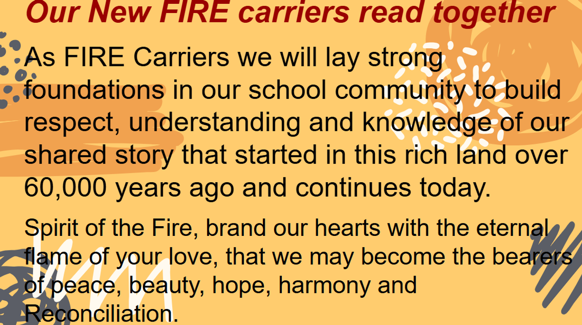 On Tuesday, we initiated our new FIRE Carrier students in a lovely ceremony where our current FIRE Carriers pass on the warmth of the flame to welcome them in to their new role. Being a FIRE carrier is a very important role in building reconciliation, appreciation and understanding with our Aboriginal and Torres Strait Islander people in our country.