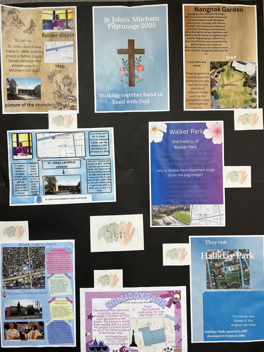 In the Year of Jubilee and Hope, a pilgrimage is a spiritual journey, encouraged by Pope Francis, to a holy site or to a place of spiritual significance, to experience God's mercy and renew hope. Our Year 5/6 students have been learning about the importance of pilgrimage for our spiritual identity and Catholic identity. They began their journey making connections with scripture and places in Mitcham. Here are posters of the places they visited.