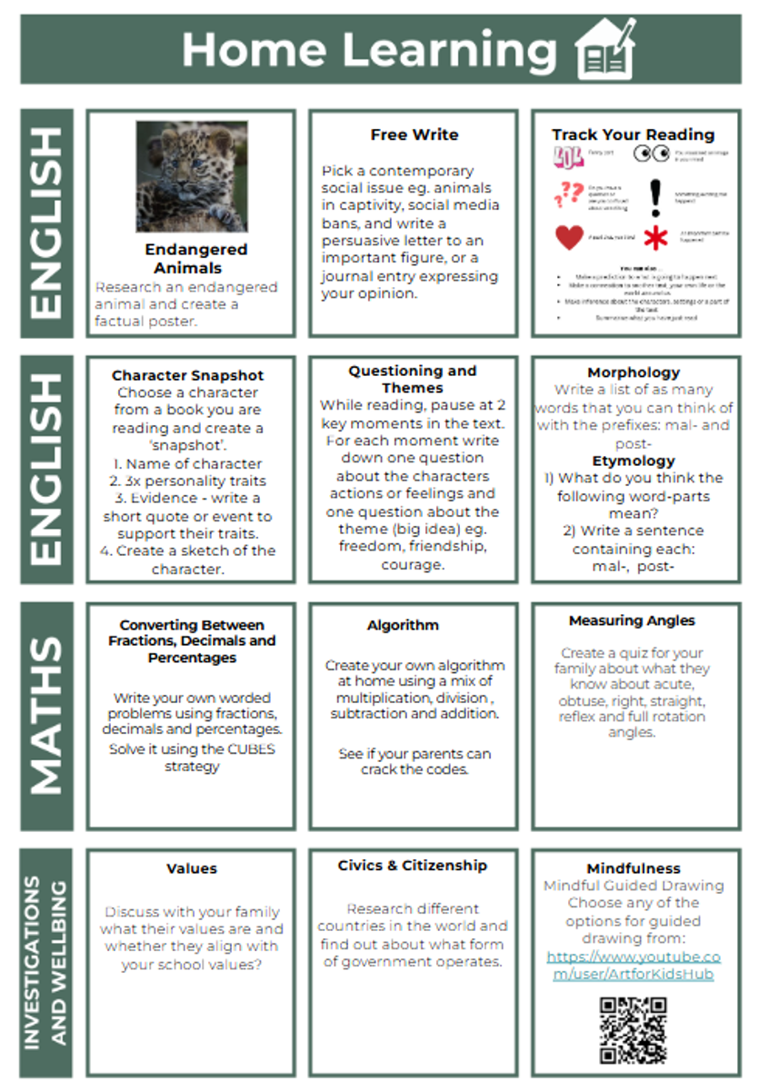 - Students should be reading every night for at least 15 - 20 minutes as well as completing at least 1 home learning task