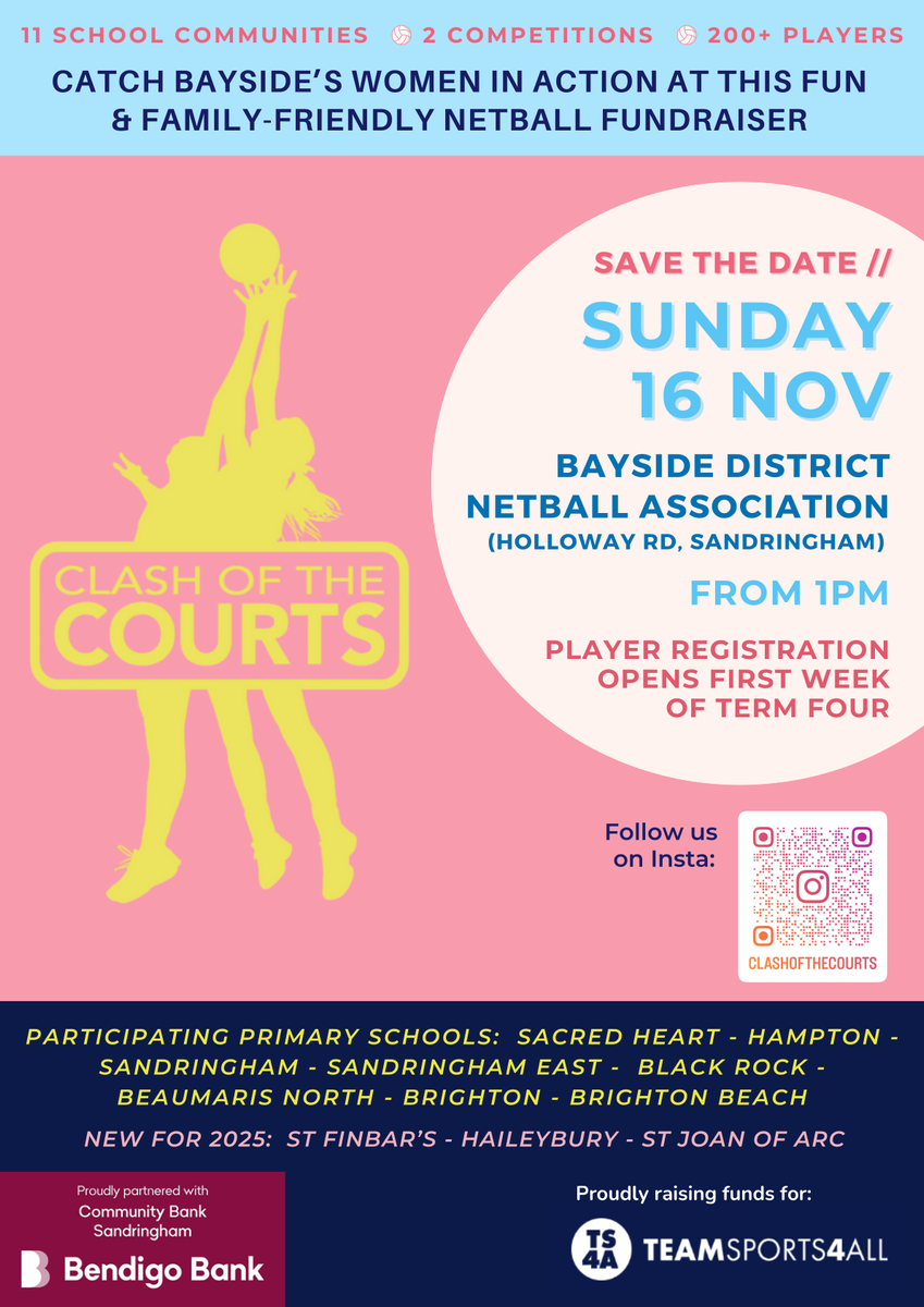 Calling all Sacred Heart women to join this year’s Clash of the Courts, a fun, family-friendly community netball fundraiser where sport and connection come together to make a difference.