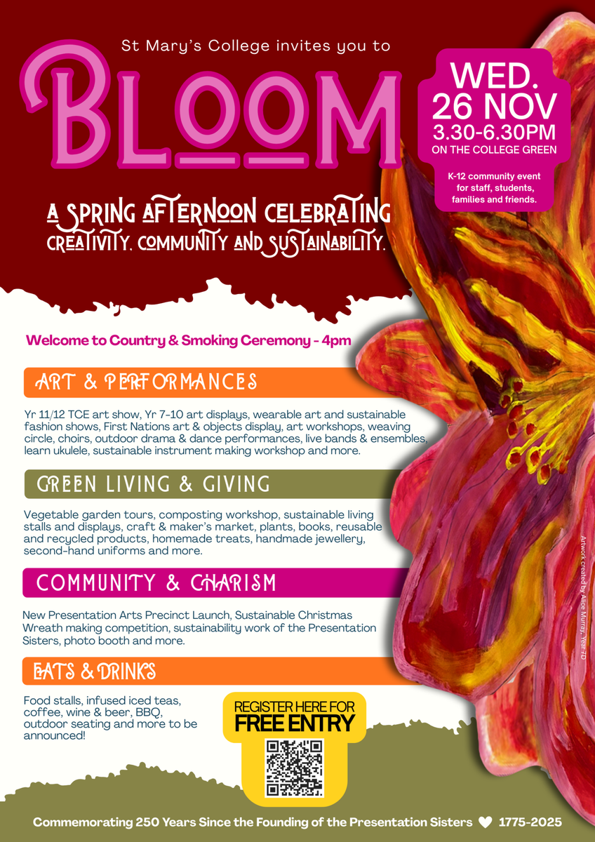 We warmly invite students, families and the wider St Mary's College community to experience Bloom 2025.