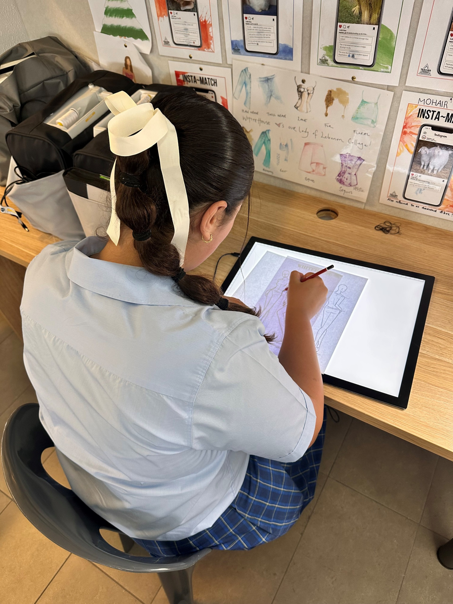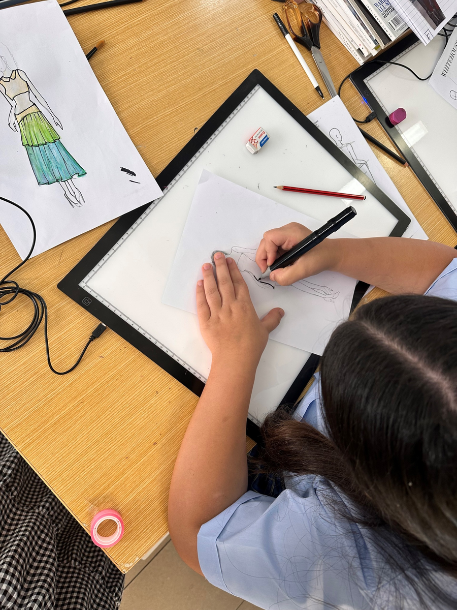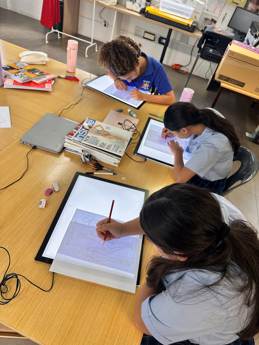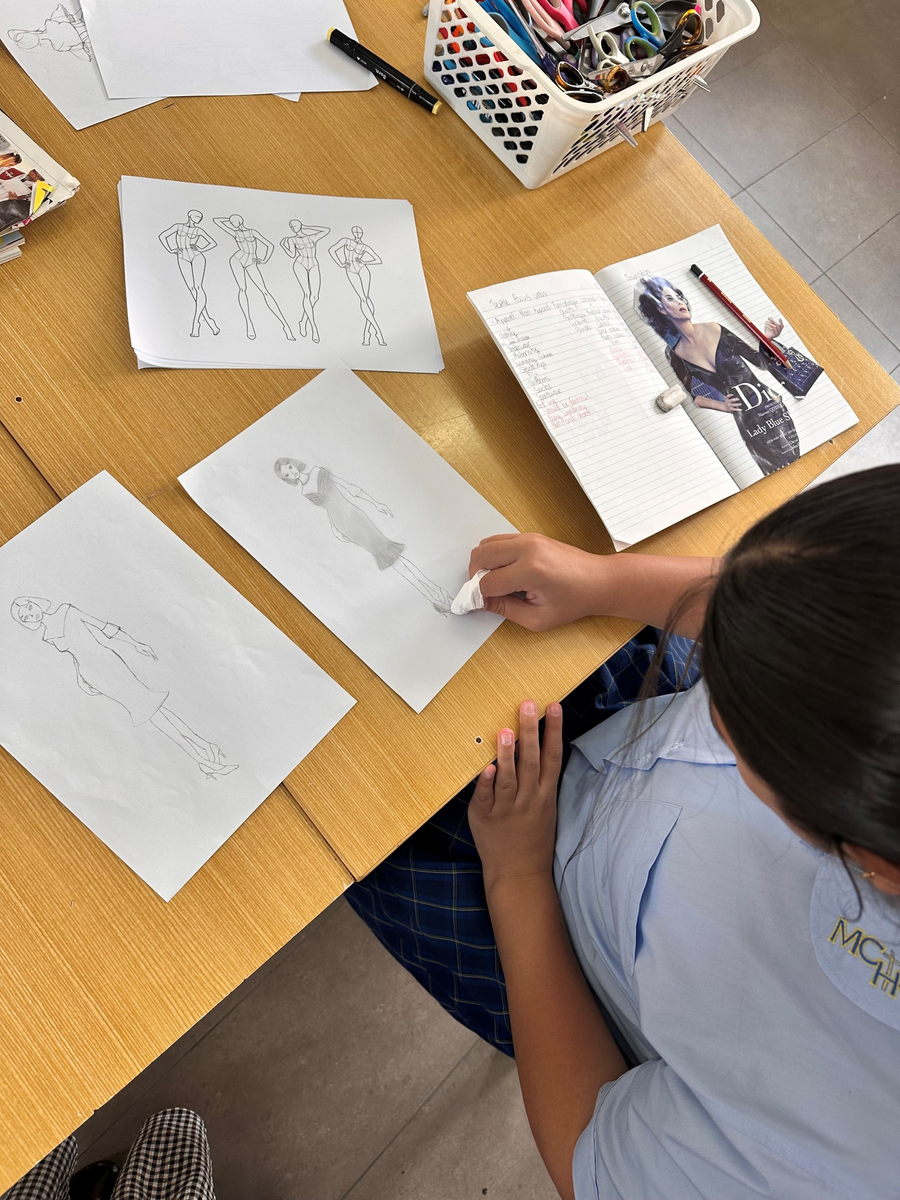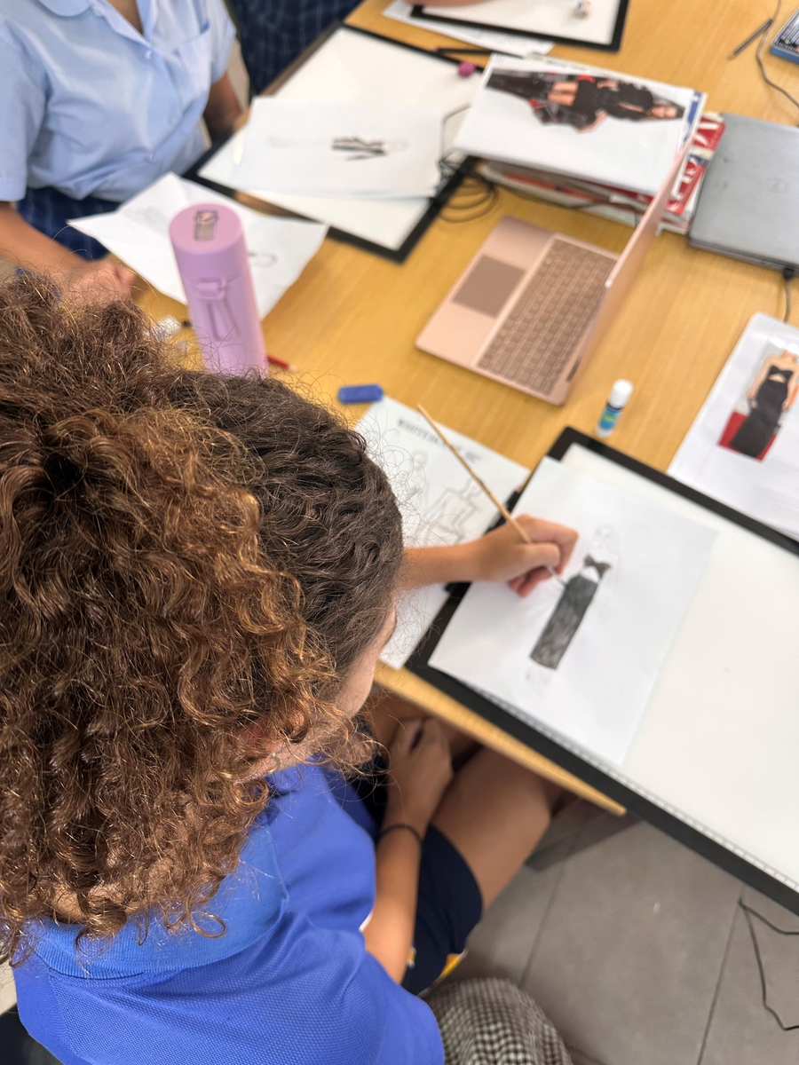 Year 9 students are diving into the world of fashion illustration as they experiment with fashion figures and various rendering techniques. This creative process allows them to explore different styles and discover their unique artistic voice. By experimenting with different techniques, the students are learning how to bring their fashion ideas to life on paper, while also finding inspiration from various sources to influence their designs.