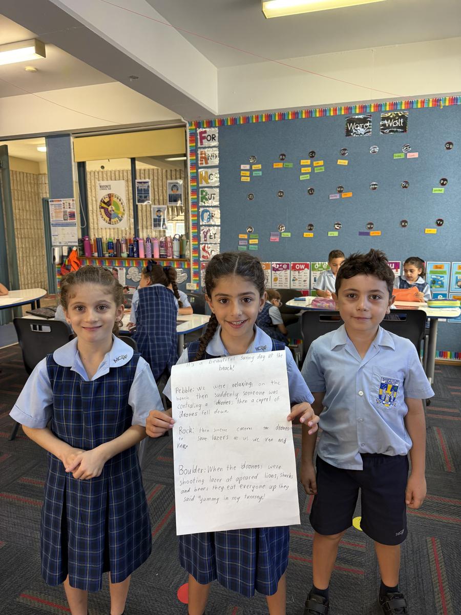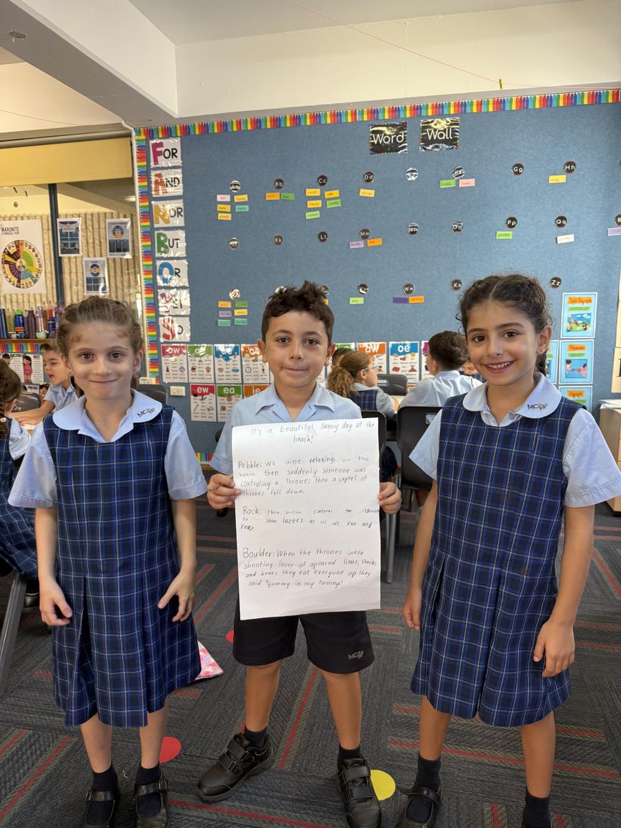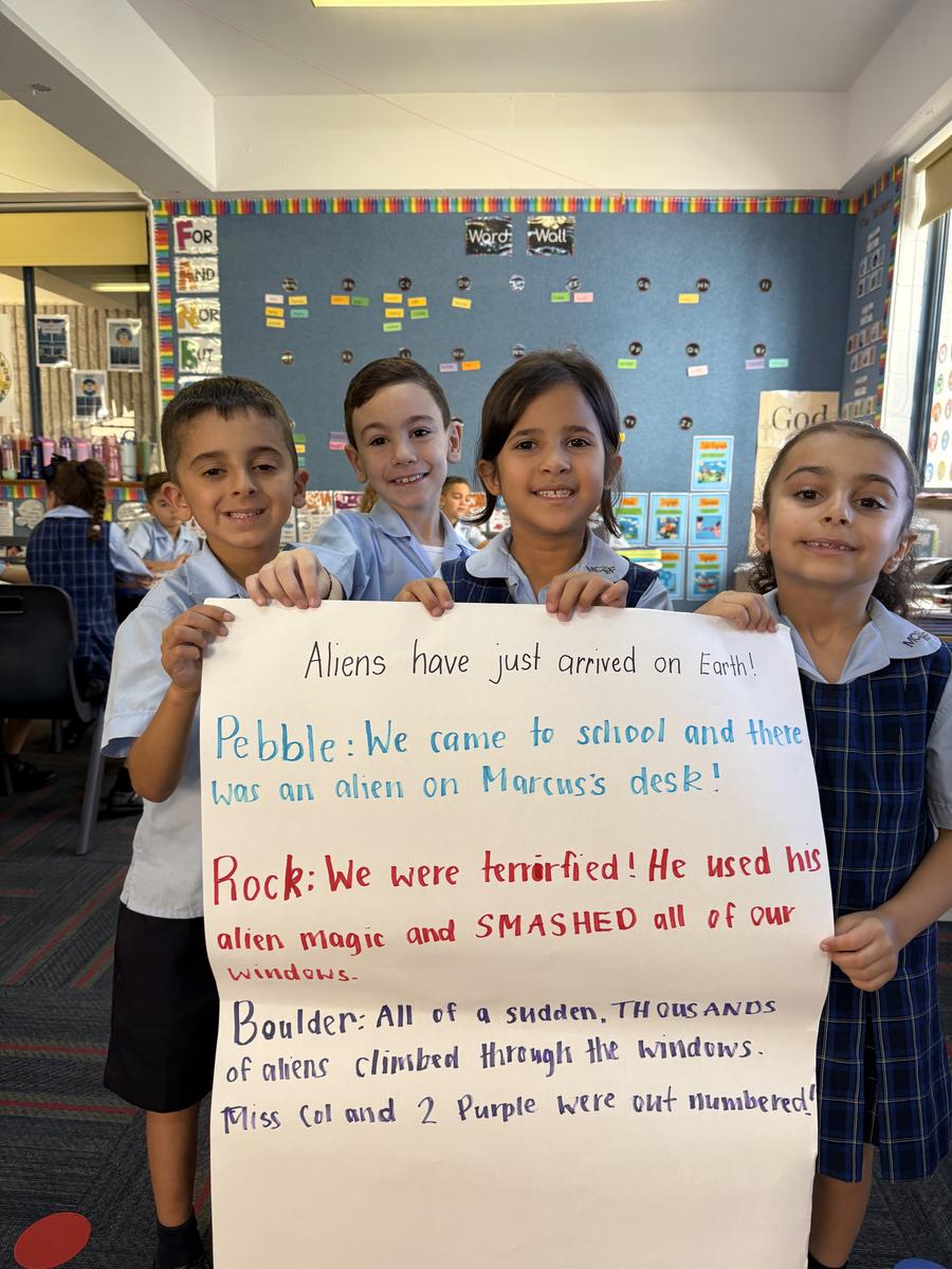 Year 2 have been exploring imaginative writing, developing their storytelling skills in creative ways. In 2 Purple, students were given different scenarios and worked in groups to craft engaging complications. Using the Pebble, Rock, Boulder structure, they built up their ideas step by step, adding depth and excitement to their stories.