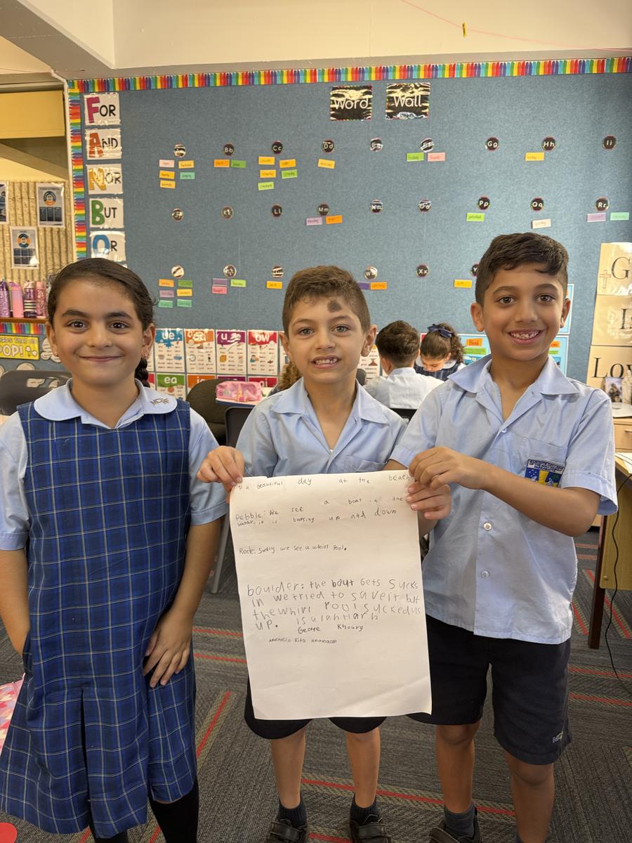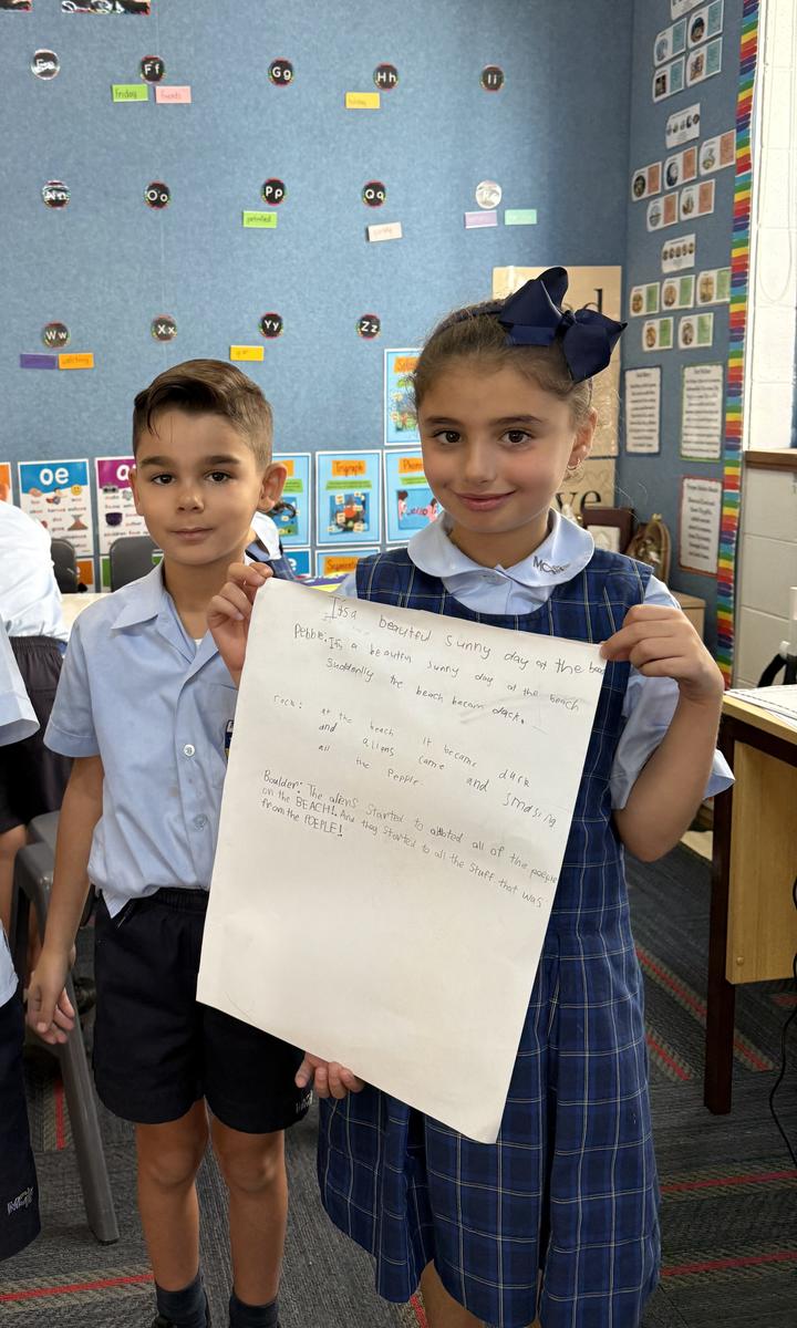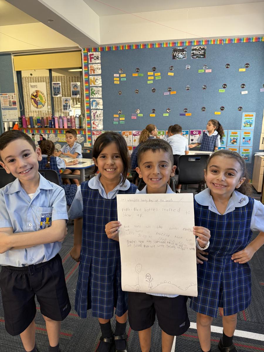Year 2 have been exploring imaginative writing, developing their storytelling skills in creative ways. In 2 Purple, students were given different scenarios and worked in groups to craft engaging complications. Using the Pebble, Rock, Boulder structure, they built up their ideas step by step, adding depth and excitement to their stories.