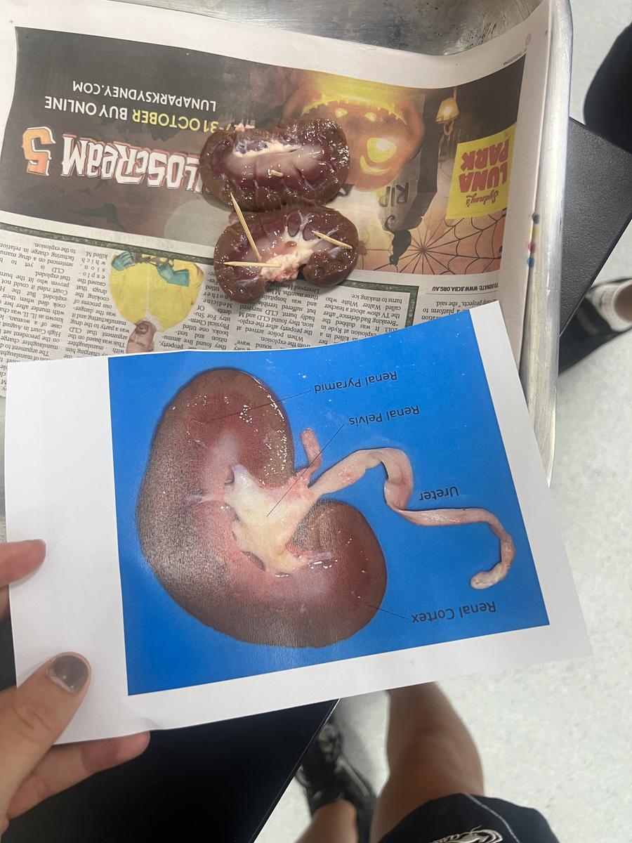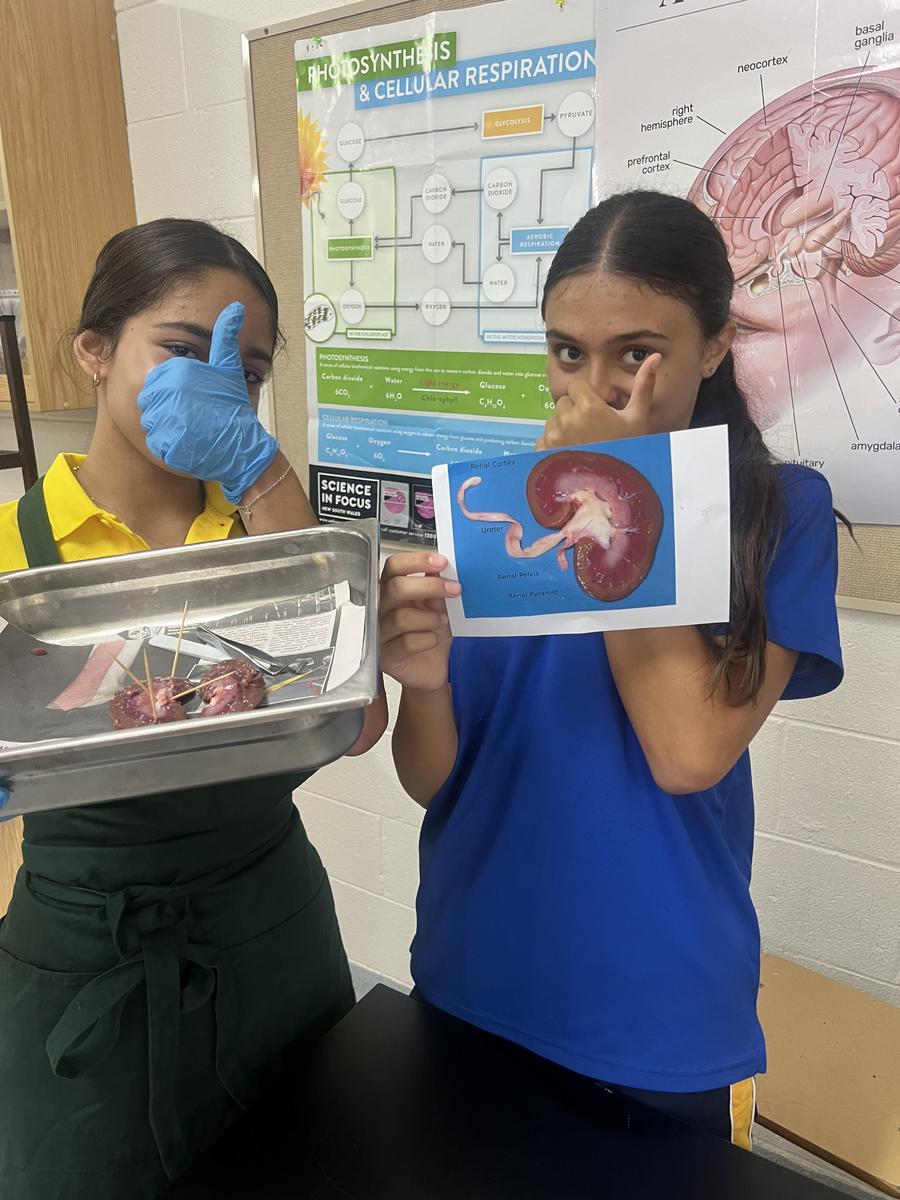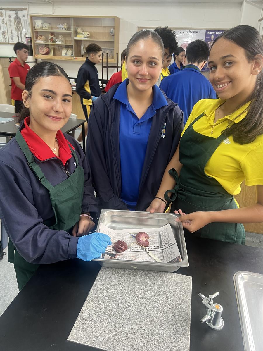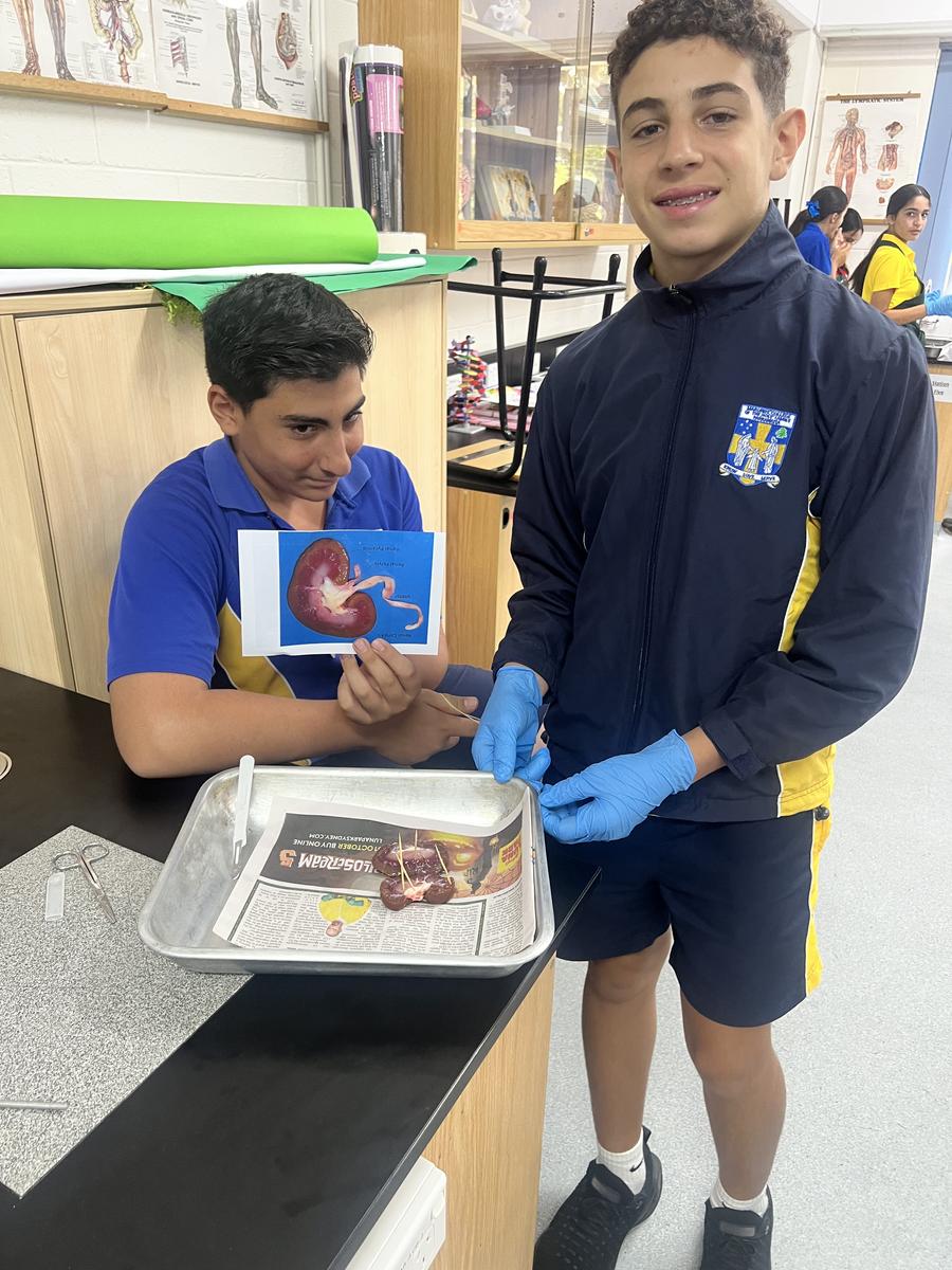 Mrs Bousleiman's 9.2 Science class performing a kidney dissection experiment as part of their Body systems topic. The students were able to identify and describe the functions of different parts of the kidney.