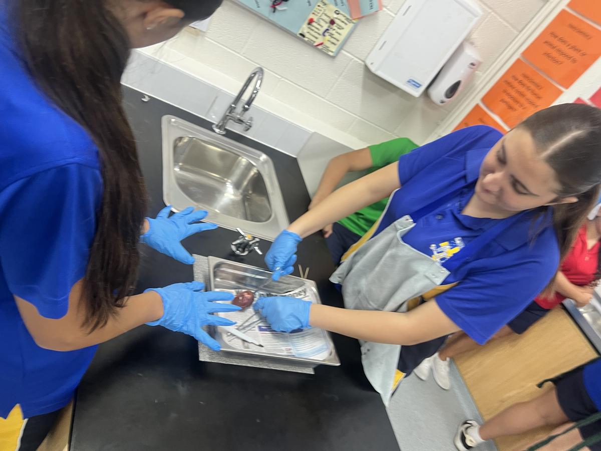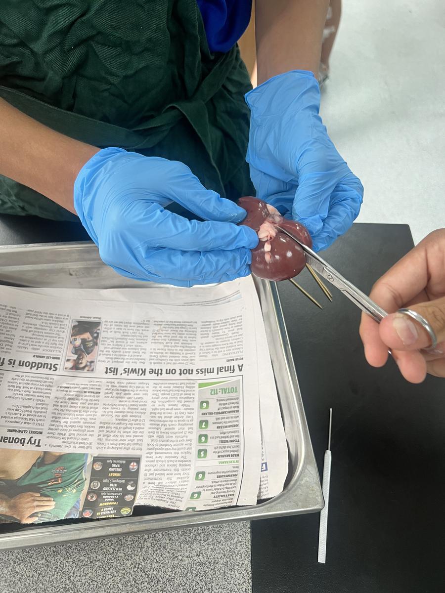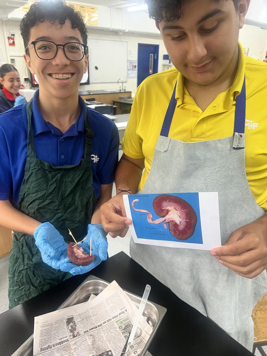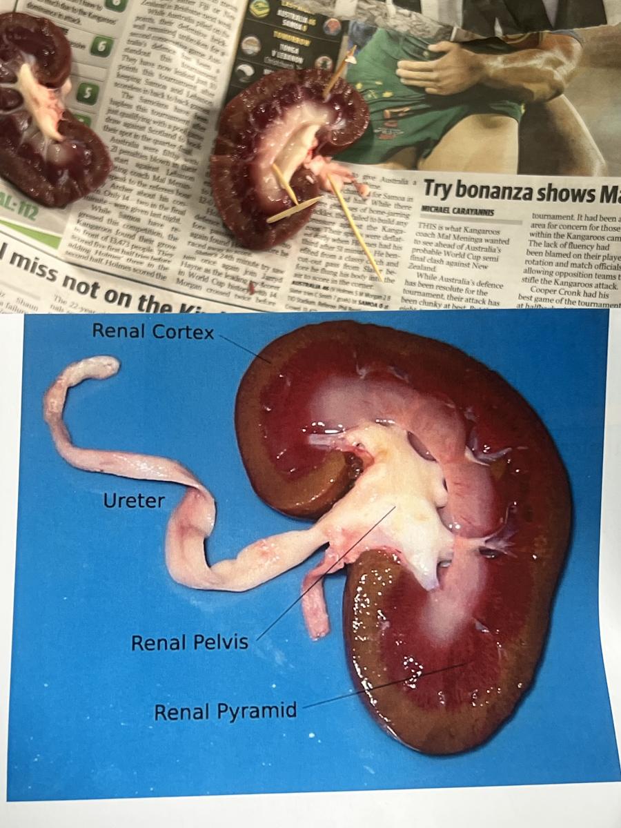 Mrs Bousleiman's 9.2 Science class performing a kidney dissection experiment as part of their Body systems topic. The students were able to identify and describe the functions of different parts of the kidney.