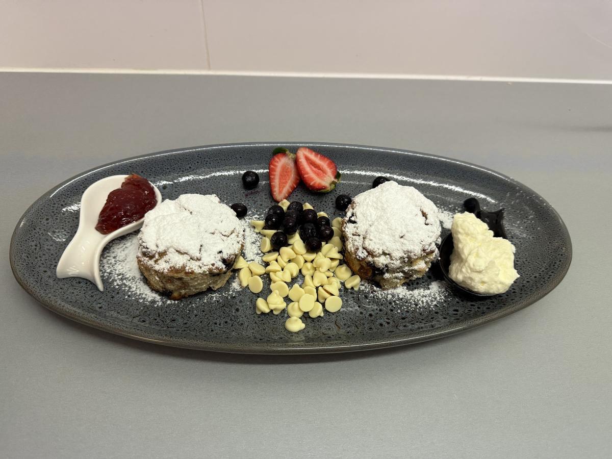 Key learning areas such as food, personal and environmental hygiene, measuring accurately, following a recipe and presenting food to industry standards were all achieved. By the end of the lesson students were able to apply their skills and knowledge to produce 3 types of scones. Can you guess what they are?